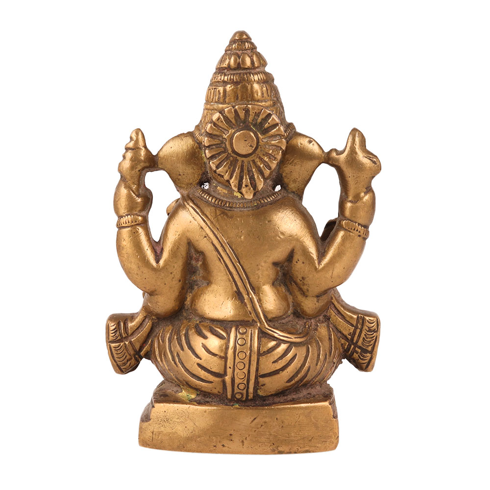 Buy a Brass Lord Ganesha statue online in a serene sitting position, exquisitely crafted by skilled Indian artisans. This stunning masterpiece stands on an elegant platform with an antique brown finish, adding a touch of timeless elegance to any space. Meticulously made from high-quality brass, the statue showcases intricate detailing that captures the essence of Lord Ganesha's divine presence. Lord Ganesha, revered as the remover of obstacles and the harbinger of good fortune, is a symbol of wisdom, intellect, and prosperity. Having this awe-inspiring statue in your prayer room at home, office, restaurant, hotel, cafe, or shop creates an aura of positivity and divine blessings. The statue's captivating beauty and spiritual significance make it an ideal gift for your loved ones on special, festive, or auspicious occasions. Whether it's a housewarming ceremony, a birthday celebration, a religious festival, or any joyous event, presenting this Brass Lord Ganesha statue will convey your heartfelt wishes for their prosperity, success, and well-being.