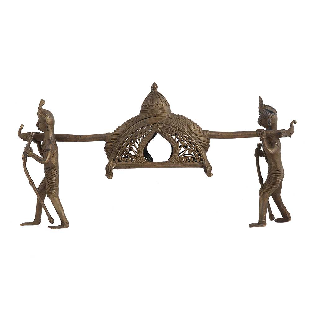• Handmade Antique Gold Brass Dhokra Warrior Bow Arrow Statue