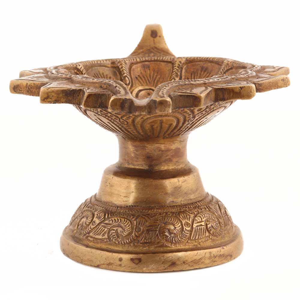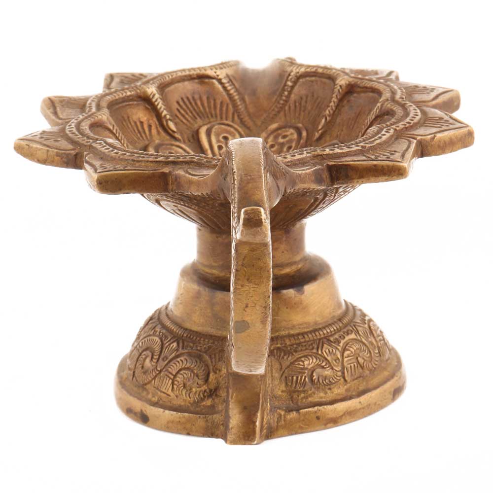 Handmade Antique Gold Brass Oil Lamp Diya With Handle