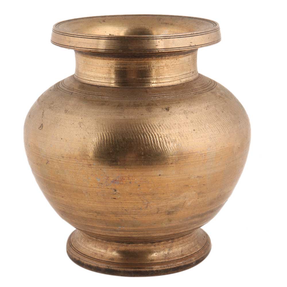 This brass south Indian water pot can be used for display in homes, kitchens and temples to worship gods. It is a great display, excellent decoration and personal gift.