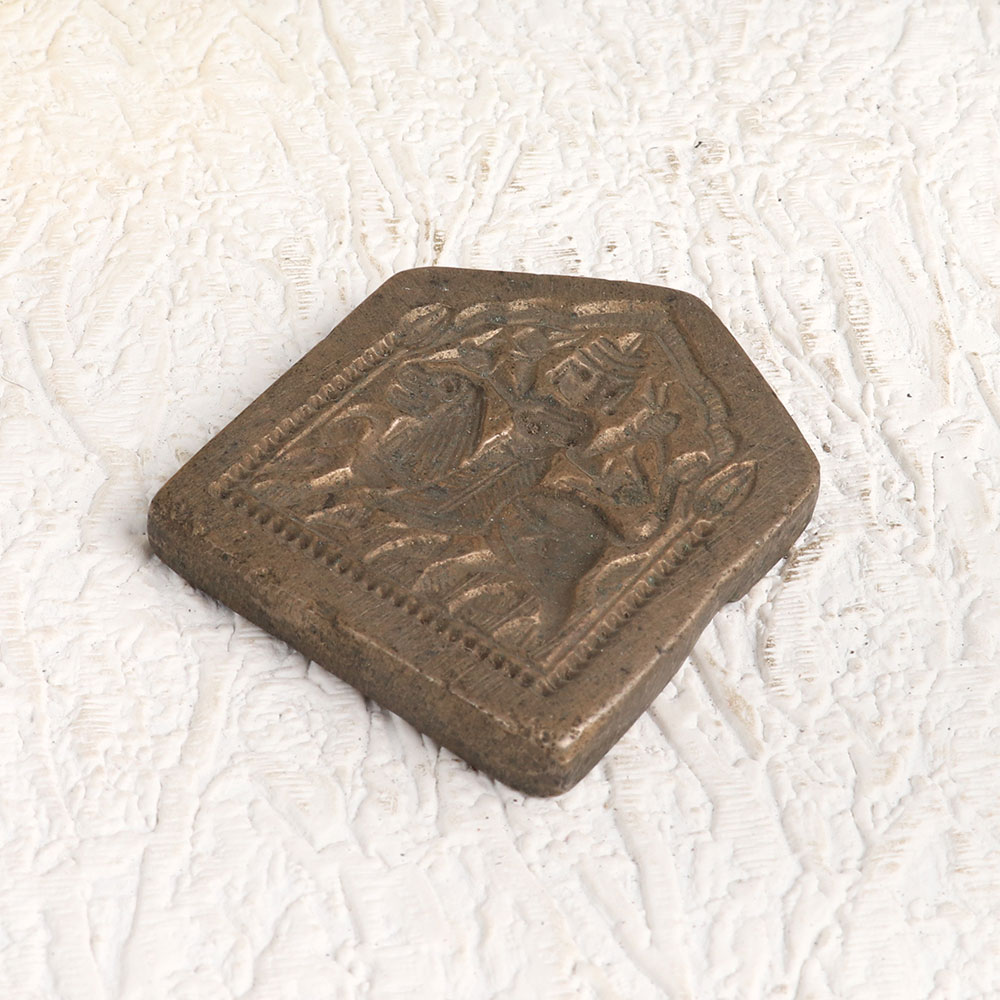 Enhance your love for vintage artistry and traditional craftsmanship with this exquisite Vintage Bell Metal Jewelry Mold. Handmade by highly talented Indian artisans, this square-shaped mold bears an enchanting engraving of a goddess figure, beautifully brought to life in an antique brown finish. Crafted from high-quality bell metal, this jewelry mold has a rich historical significance. It serves as a testament to the time-honoured practices of gold and silver smiths, who used such molds to create intricate jewelry pieces. The mold, a work of art itself, is not confined to the jeweler's studio, it can be a captivating addition to your home, office, restaurant, hotel, cafe, or shop, enhancing the ambiance with its timeless charm. This exquisite piece is an ideal choice for collectors of vintage items and makes for a thoughtful gift on special, festive, or auspicious occasions.