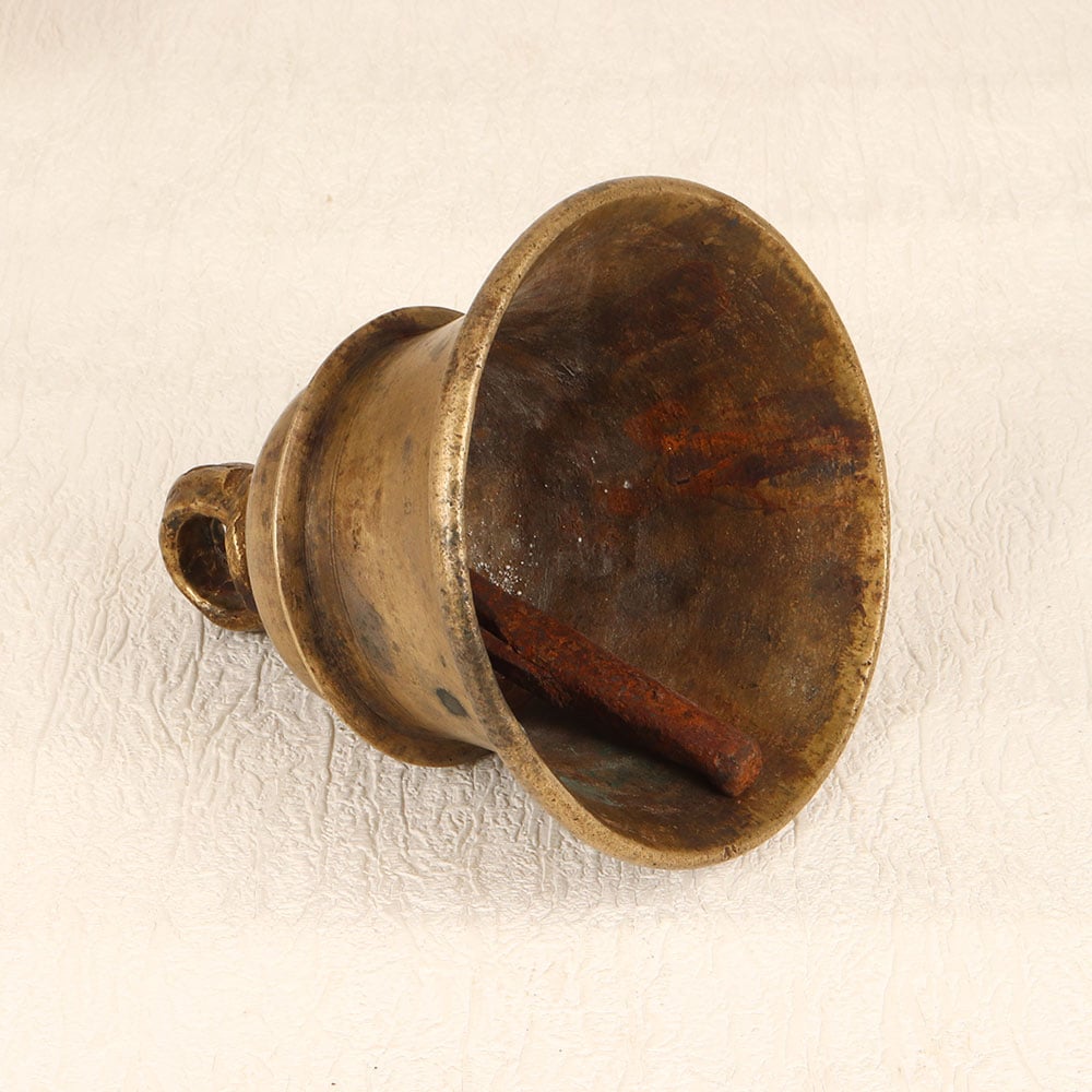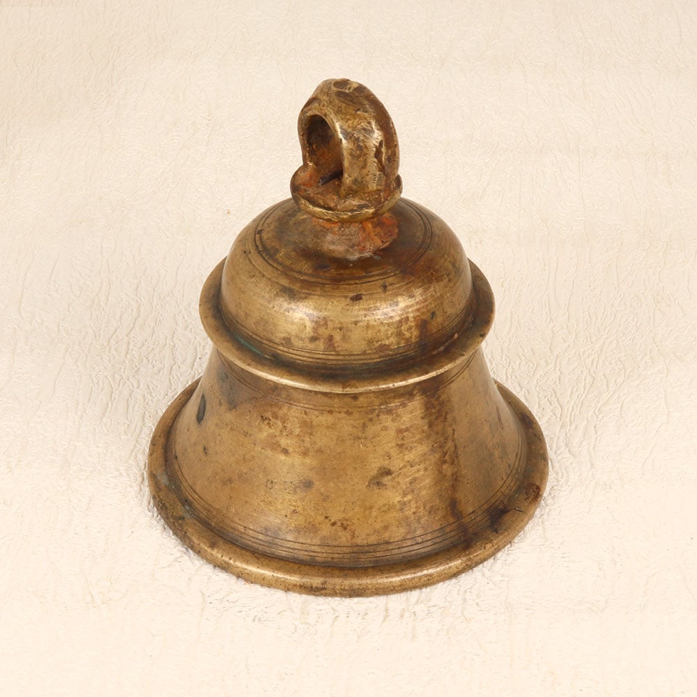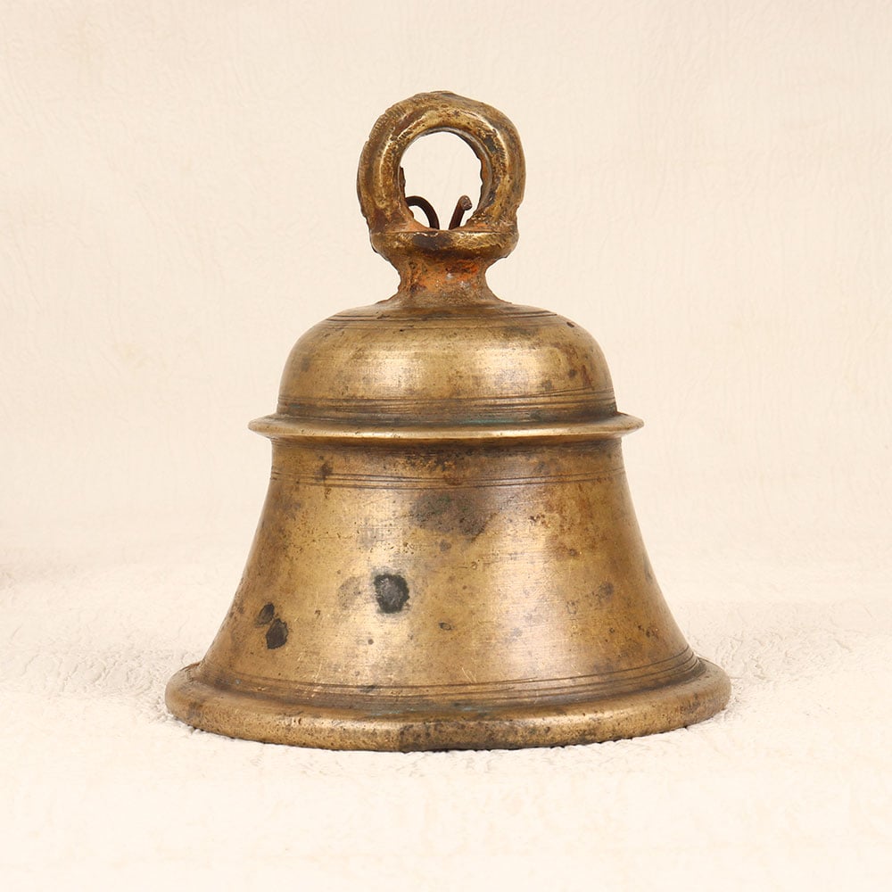 This vintage bell metal temple bell is a true embodiment of cultural heritage. Meticulously handcrafted by professional artisans from Central India, this bell resonates with the rich tradition of bell metal craftsmanship. The exquisite antique brown finish adds an aura of antiquity, while the high-quality bell metal ensures durability and an authentic resonance. Featuring a convenient loop for hanging, this temple bell is versatile, making it a perfect addition to your prayer room, temple, or any sacred space. Beyond religious use, its charm extends to home, office, restaurant, hotel, or cafe decor. Elevate your surroundings with its historical allure or gift it to your loved ones on special, festive, or auspicious occasions. This bell not only serves as a spiritual symbol but also becomes a cherished part of any vintage collection.
