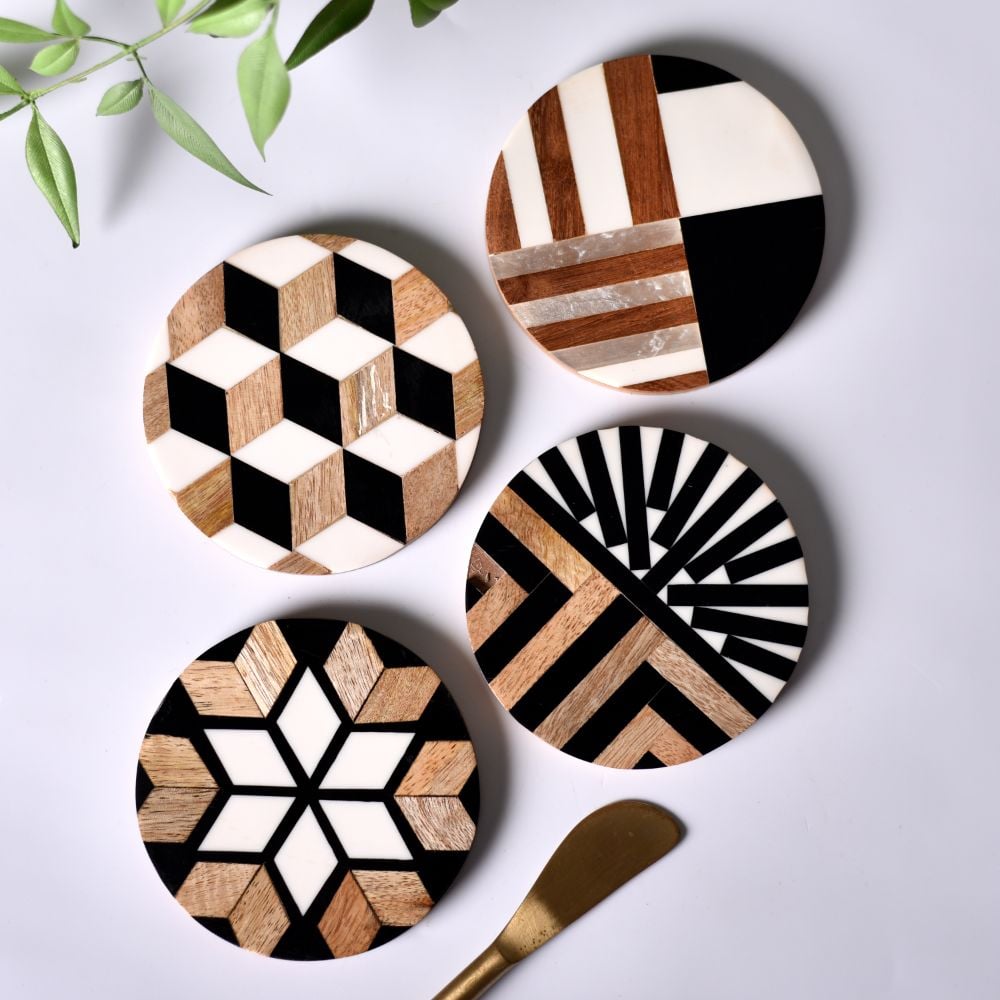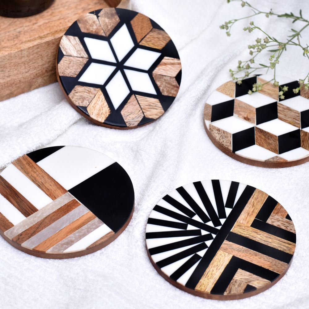 Made from sustainably sourced wood and durable resin, these coasters reflect a commitment to eco-friendly design. The natural materials provide durability without compromising on environmental responsibility, making these coasters a conscious choice for any eco-aware consumer.