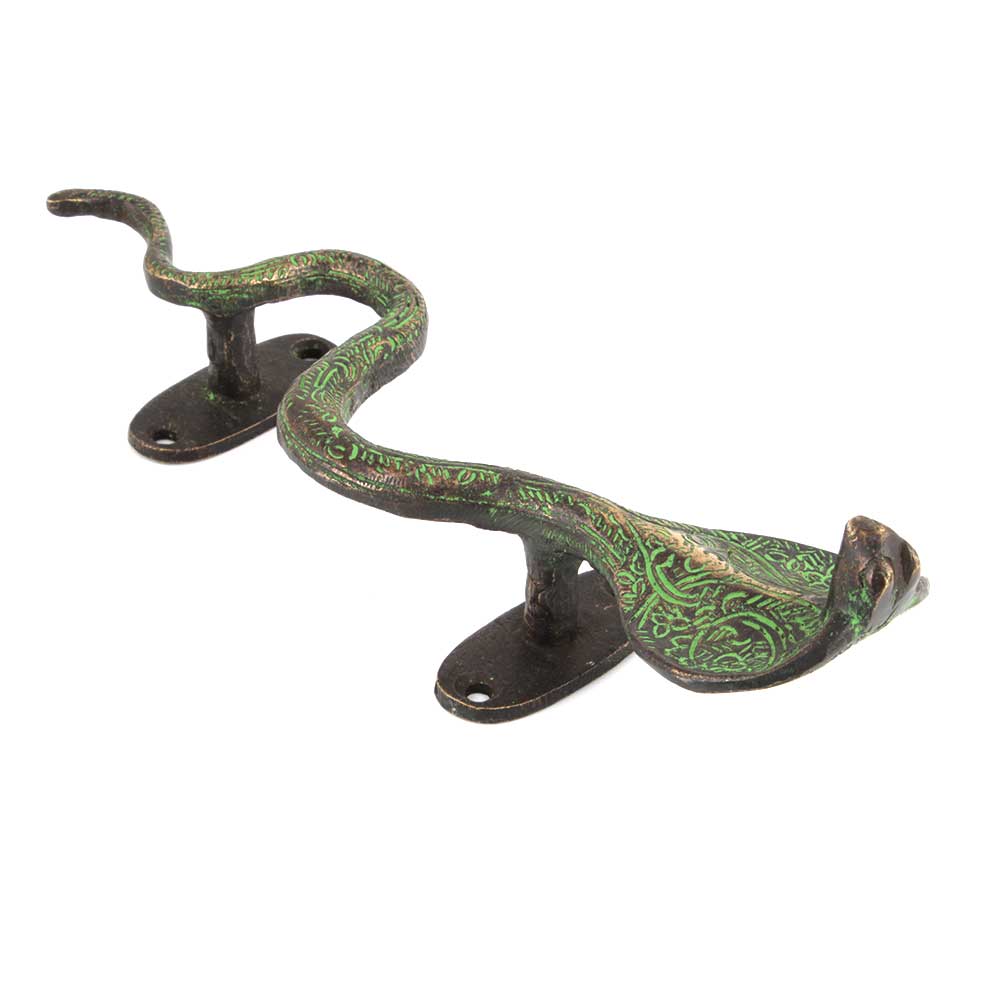 Looking to feature slightly of royal Indian splendor to your decor. This hand casted Brass Snake Cobra Door Handle or cabinet pull will do the trick. Ideal for Drawer, Dresser, Cabinet, Wardrobe, Cupboard and Almirah. It comes with a rich dark patina.