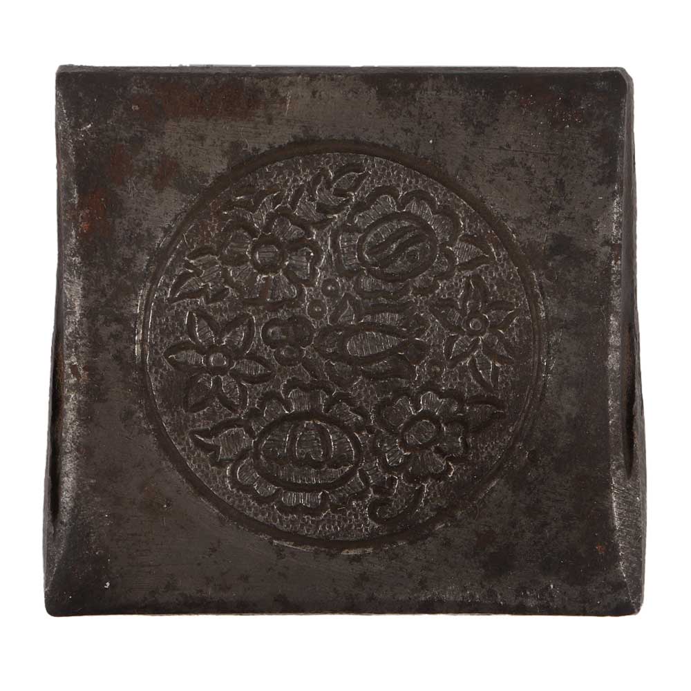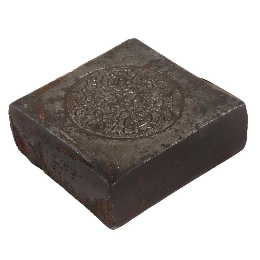 • Handmade Black Brass Cube Shaped Paperweight With Engraved Floral Design