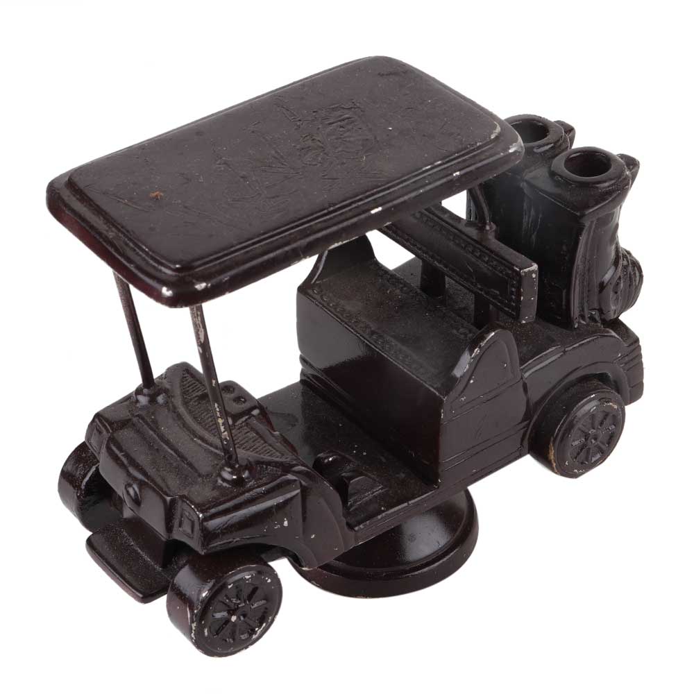 • Handmade Black Brass Golf Cart Toy On Stand