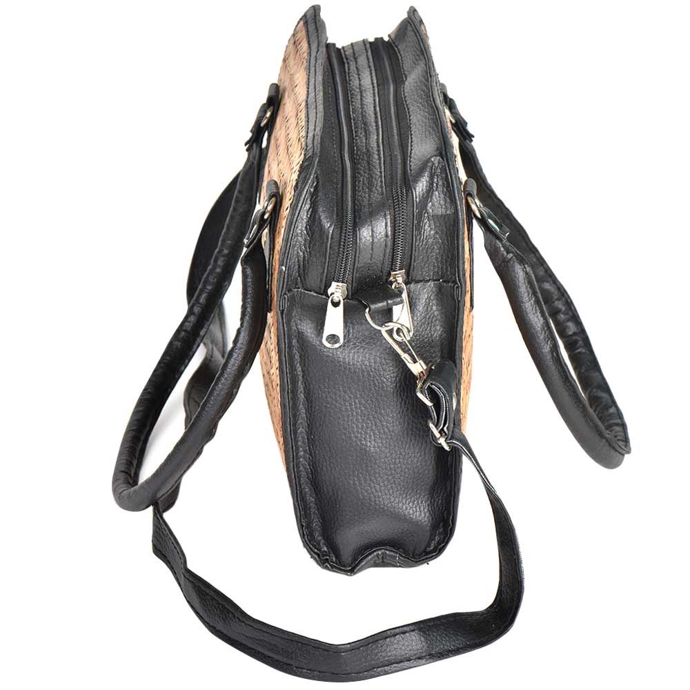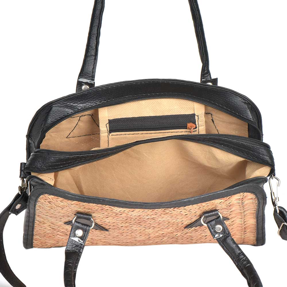 Beautiful handmade and handwoven bamboo cane shoulder bag with black faux leather border and and soft handles also in black is not only fashionable but also very spacious.