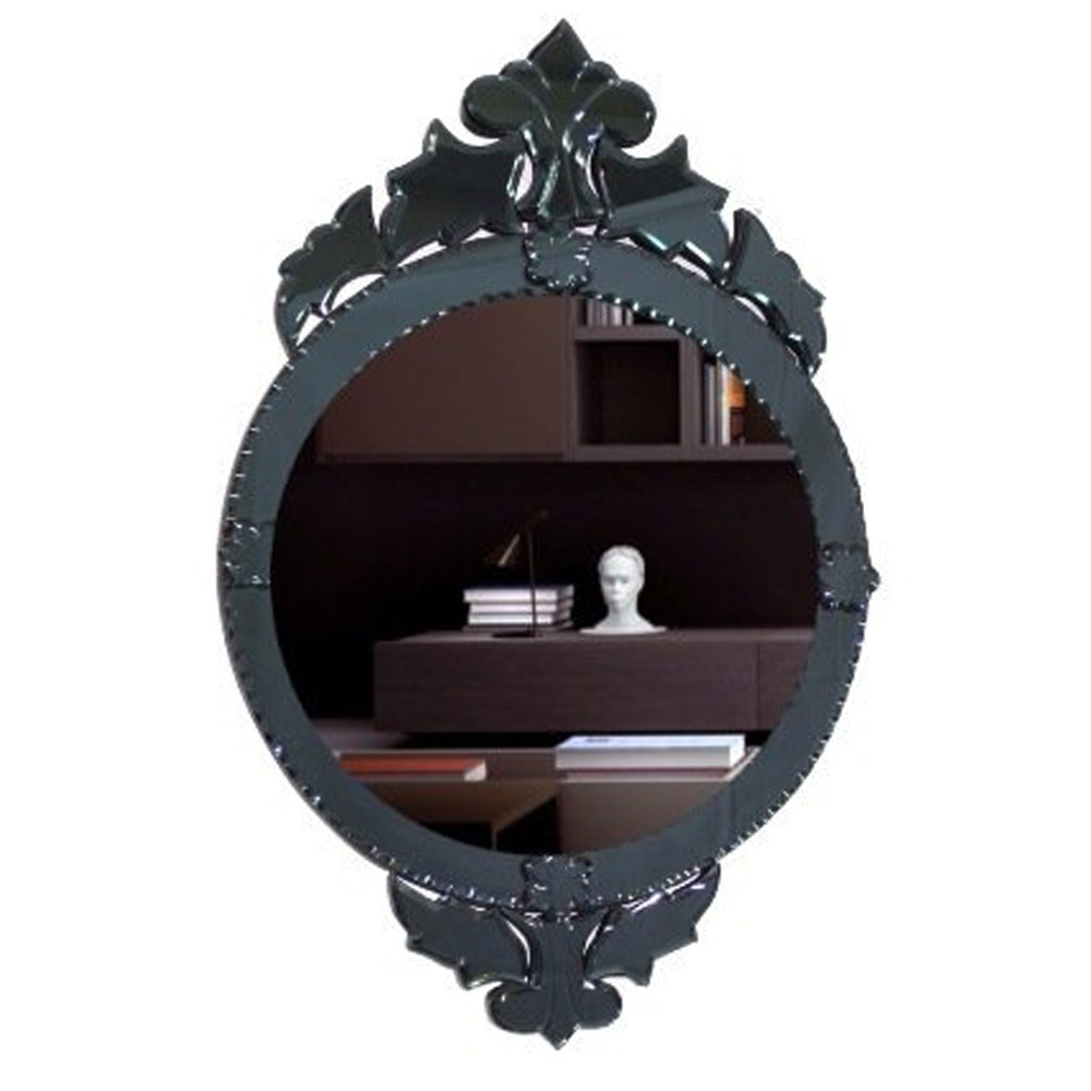 Handmade Black Oval Venetian Mirror With Decorative Crown