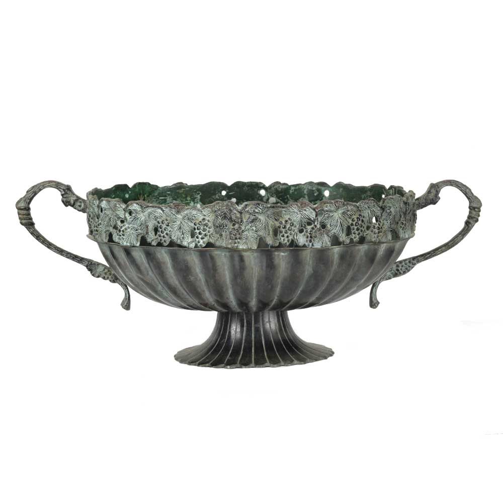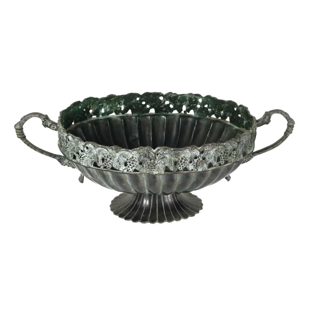 Handmade Black patina brass bowl with decorative rim and side handles can be a great gift option for religious celebrations or festivals. It is the best wedding gift, birthday gift, anniversary gift, newborn baby gift, greenhouse gift and gift for any occasion.