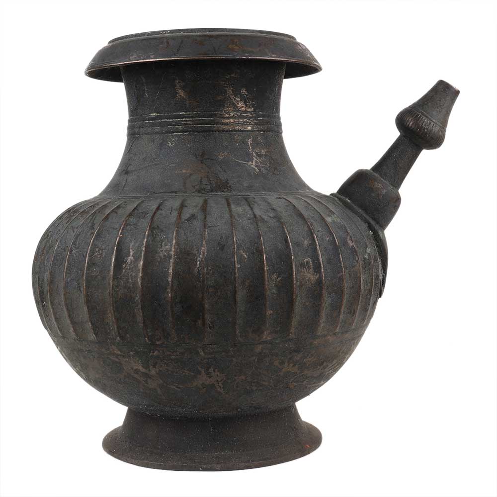 Handmade Black Stained Brass Pot with Spout traditionally made for storing the holy water is used for decoration, as a corporate gift, return gift as it has a vintage look.