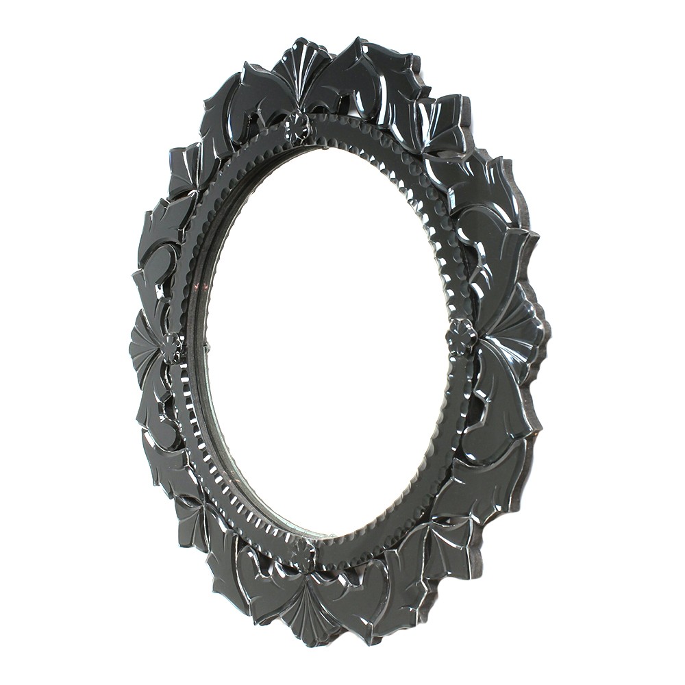 It is perfectly hand-carved, with delicate leaf-like details in high relief. The frame has a beautiful shield outline, supporting a mirror with beveled edges.