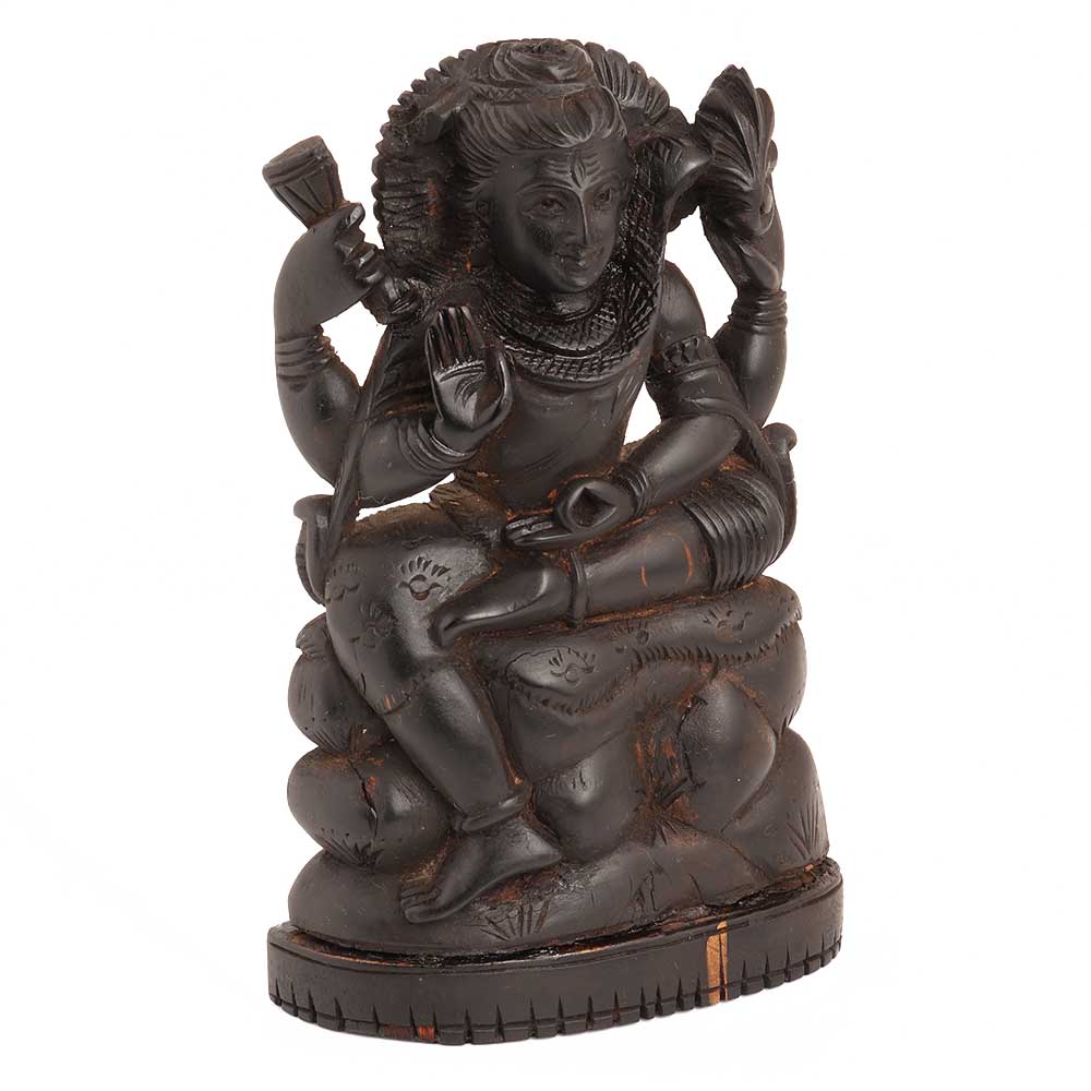 • Handmade Black Wood Sitting Lord Shiva Statue