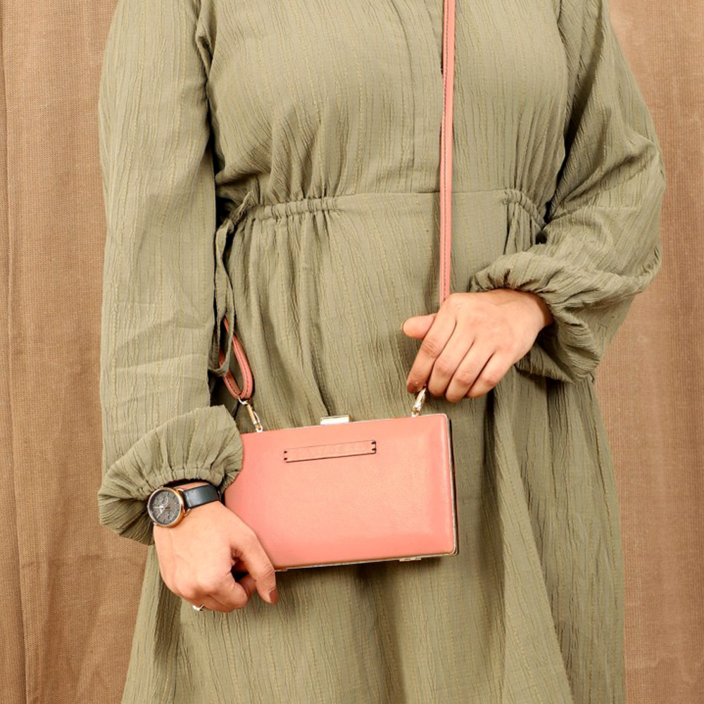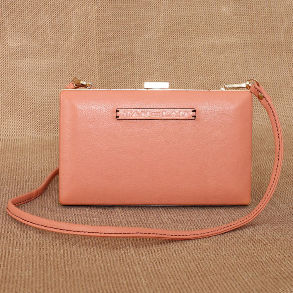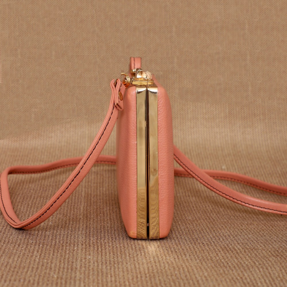 Crafted from lovely Blush leather it has a clutch clasp closure that adds a touch of vintage charm while keeping your essentials secure. Inside, a center zip divider helps organize your items, making it easy to carry your phone, makeup, and wallet. For added convenience, the adjustable and detachable crossbody sling lets you wear it as a hands-free crossbody during the day, or as a handheld clutch for your evening events.