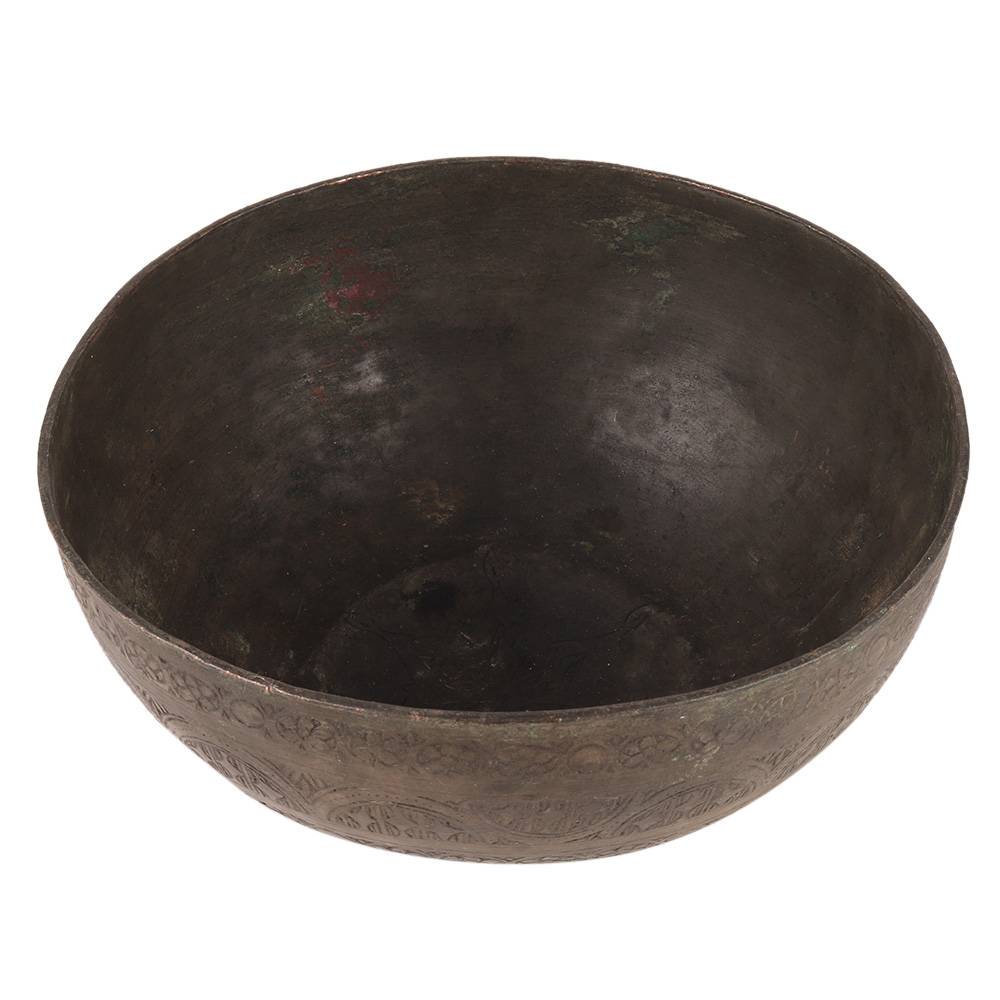 This is a handmade brass bowl with beautiful tribal craftsmen' designs or patterns on the entire bowl on a round stand. Use it for yourself or as a table or showcase ornament. Give it to your friends and family for Diwali, an occasion, an anniversary, a housewarming, as a souvenir, or as a business present.