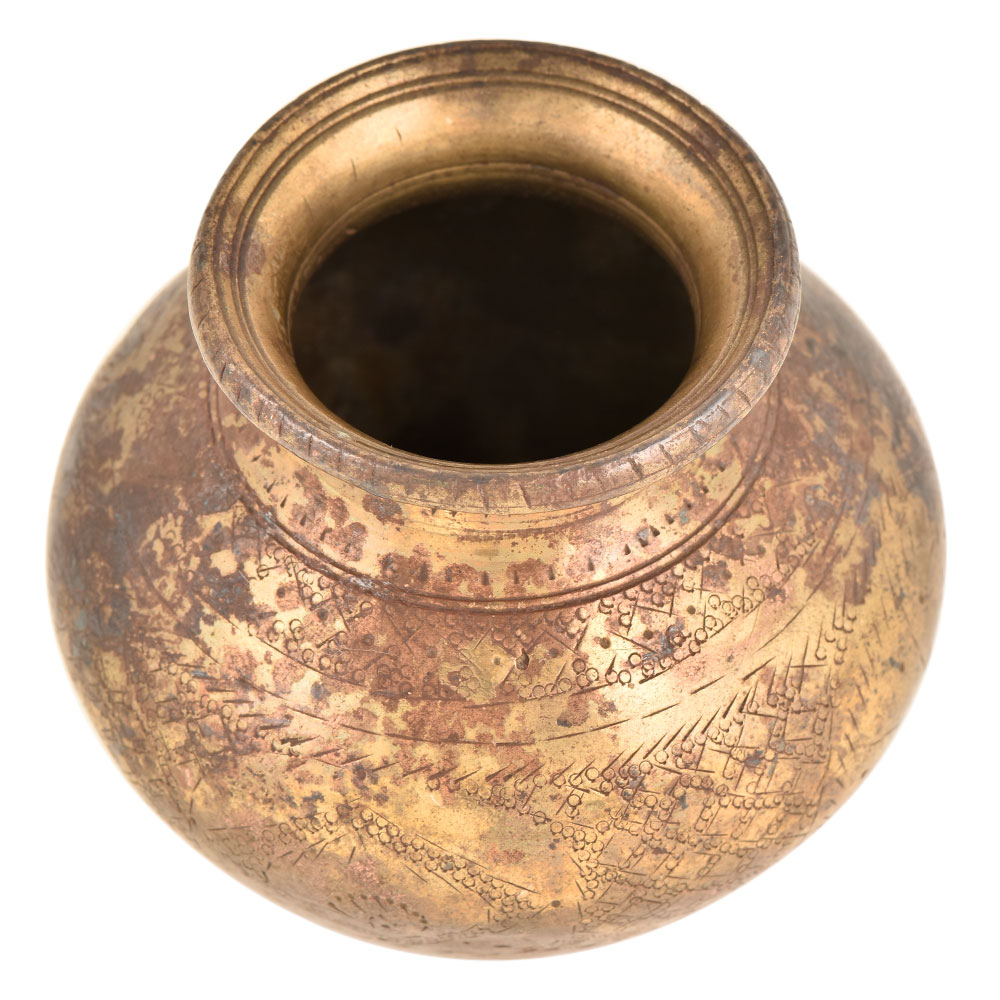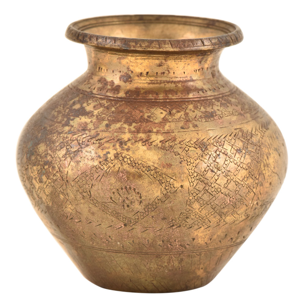 Handmade Brass Carved Floral and Leaves Design Pattern Pot