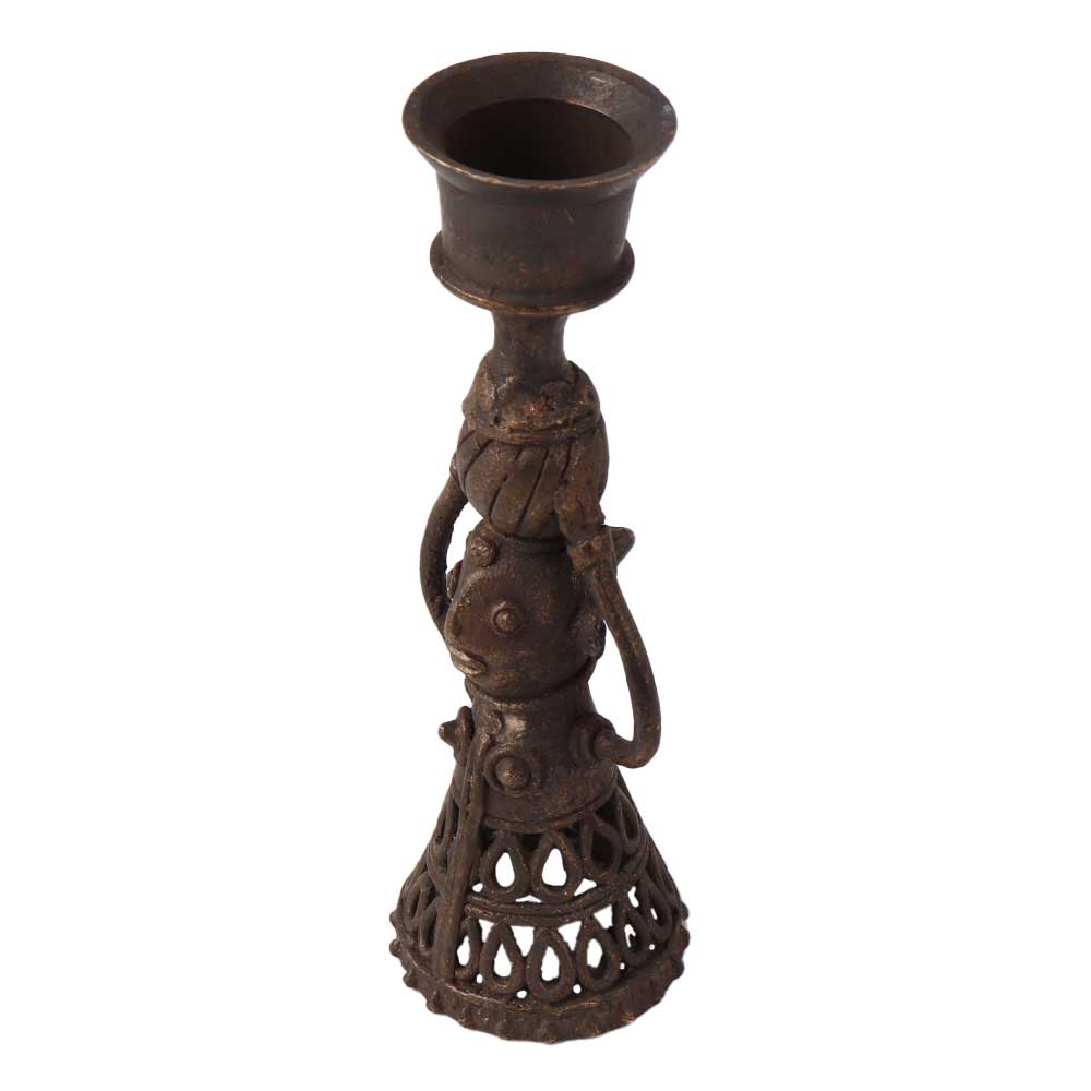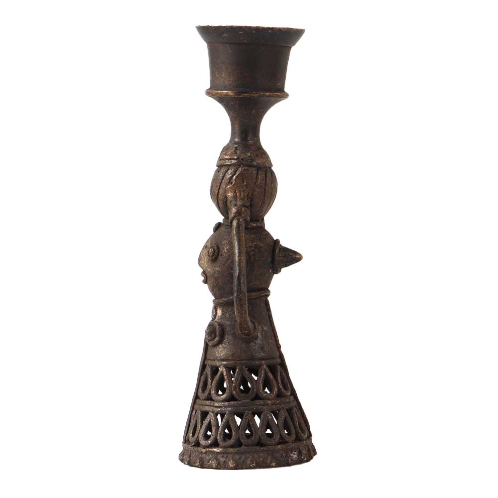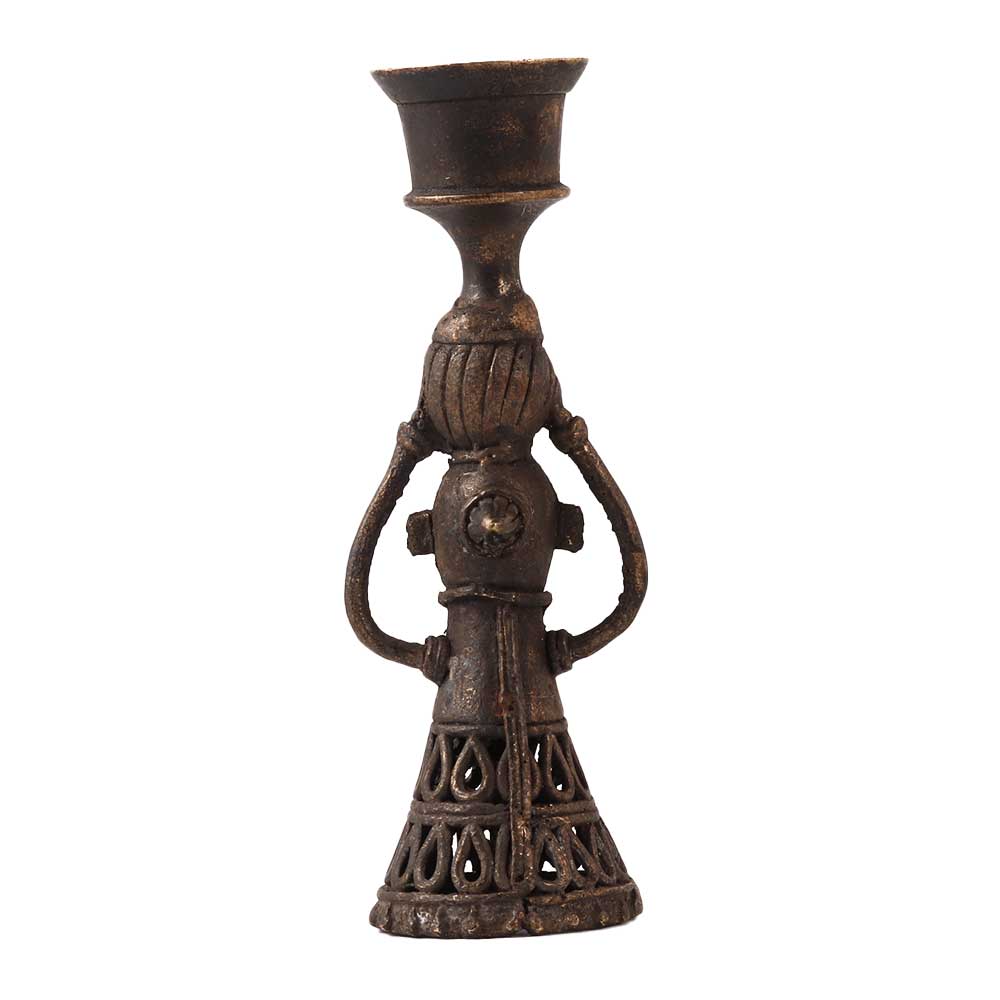 A traditionally handcrafted candle holder made of high quality brass that will add an alluring look to your interiors. This brass doll candle stand is crafted in folk art with intricate details. Its sophisticated design and jali work set it apart from other candle holders. A brass stand in folk art to add to your vintage collection or place on restaurant or hotel tables to offer your guests a vintage style candlelight dinner. A housewarming gift, anniversary, wedding, corporate, New Year, Diwali or Christmas gift for you loved ones.
