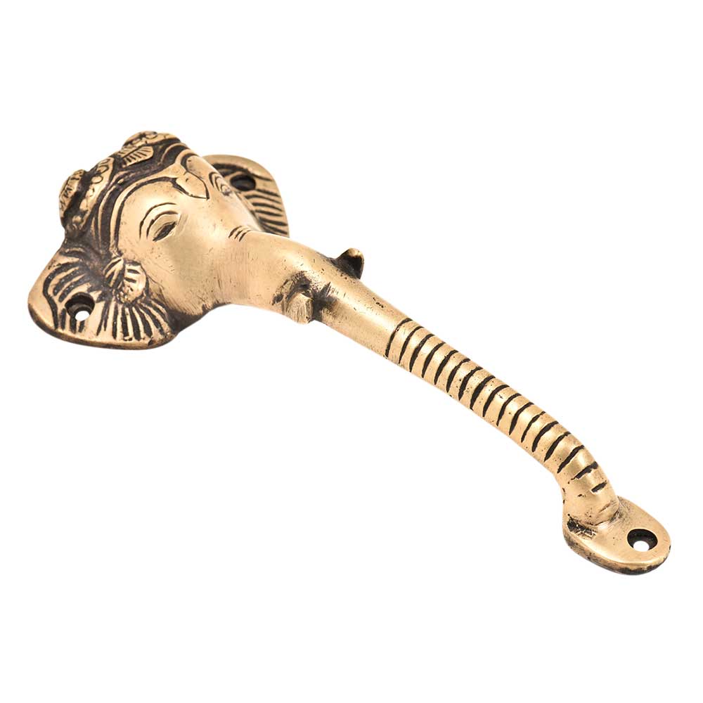 Beautiful handmade elephant handle is made of brass by the skilled craftsmen of India. This handle has fine engraving and has tusks which looks beautiful. This handle can be used for your wardrobe, almirah, doors, cabinets etc.