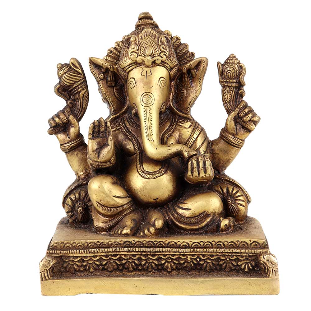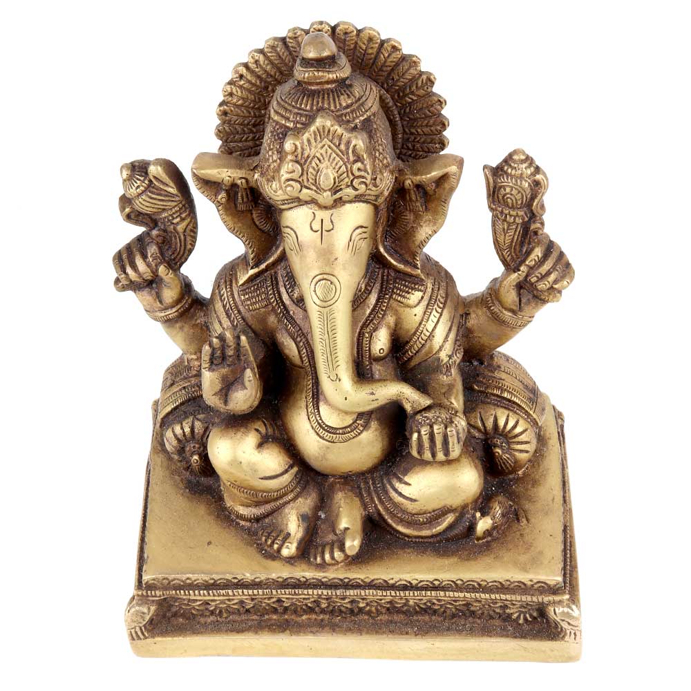 Handmade Brass Ganesha Statue With Pillows Blessing God Figurine