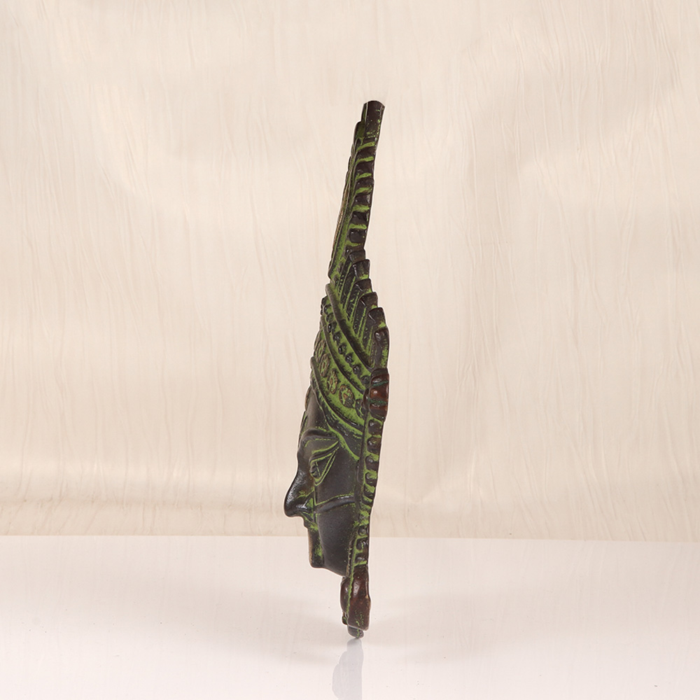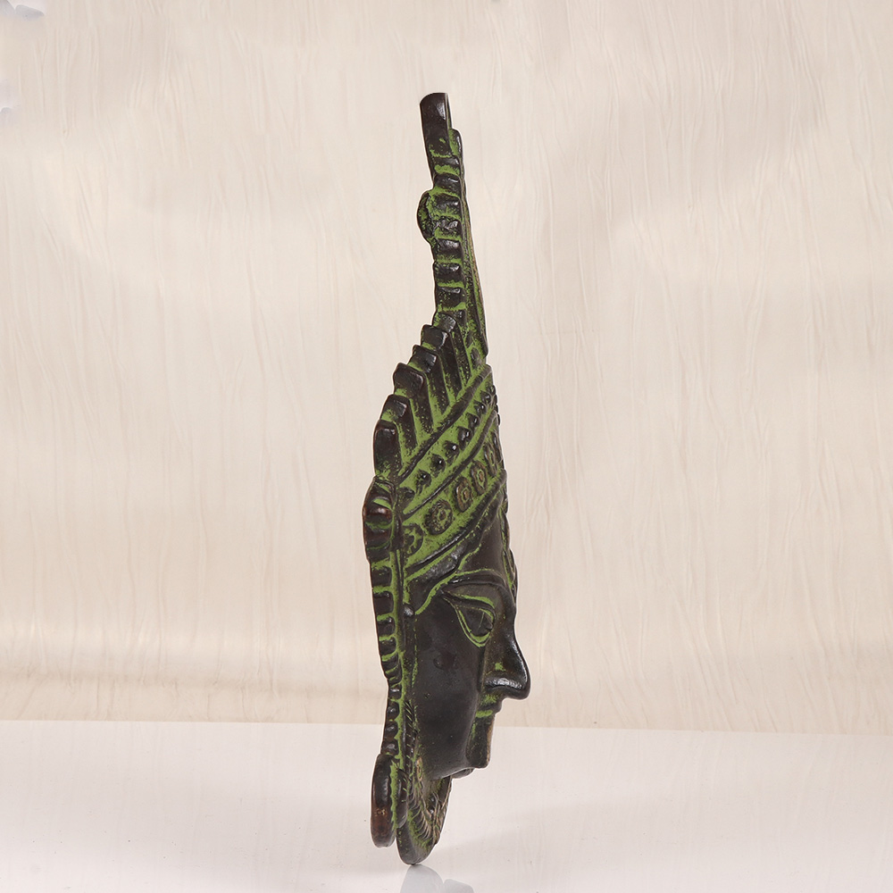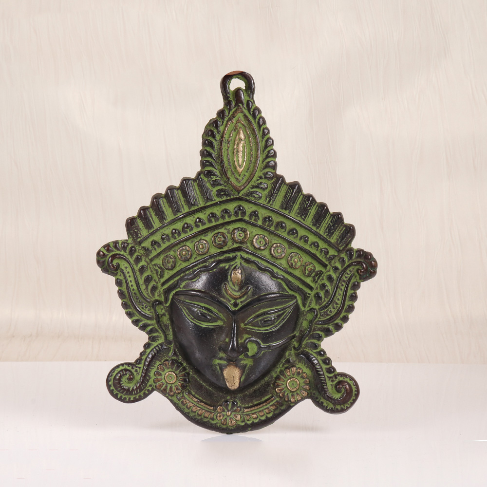Kali, the fierce and fearsome Hindu goddess, is a force to be reckoned with. This breathtaking brass wall hanging captures her essence in stunning detail, inviting the wearer to connect with her transformative energy. Crafted from solid brass and finished in a rich, dark patina, this piece commands attention and awe. The Goddess Kali is a complex figure, representing both destruction and rebirth, death and renewal. She is the divine embodiment of feminine power - fierce, unapologetic, and unbound. Hanging this striking wall hanging in your home or sacred space is an invitation to tap into that power, to let go of what no longer serves you, and to embrace the vital, untamed essence of the feminine divine. Whether you're a devotee of the Goddess or simply seeking to infuse your space with potent spiritual energy, this brass Kali wall hanging is a stunning and impactful addition. Let it inspire you to unleash your own inner power, to face your fears, and to surrender to the transformative cycles of life. Invite the Goddess Kali to be your guide on the journey of self-discovery and empowerment.
