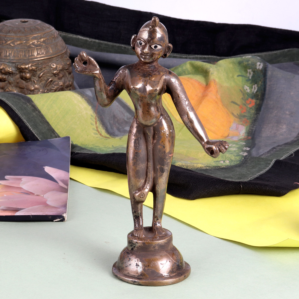 Buy this handcrafted brass statue of Goddess Radha online from our website to get hassle-free delivery right at your doorstep. This statue depicts Goddess Radha in a dancing position. Goddess Radha is the consort of Lord Krishna and is one of the most important deities worshipped in Hinduism for love, tenderness, compassion and devotion. She is also known as Goddess Radhika. This statue is handcrafted by skilled Indian artisans from North India using the best quality brass to make a remarkable impact in interior design. Add an ethnic flair to your prayer room with this statue. Place this exquisite piece in the prayer room of your home, office, hotel or restaurant for worship. An auspicious gift for any special and festive occasion for your near and dear ones.