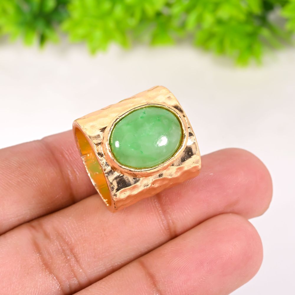 The Handmade Brass Hammered Ring with Green Jade Gemstone for Women is a striking blend of texture, symbolism, and refined craftsmanship. Crafted in brass and finished with radiant 22K gold plating, the ring features a gently hammered surface that adds depth and artisanal character. At its centre, a soothing green jade gemstone brings a sense of calm elegance and natural balance. Compact yet expressive, this ring is designed for everyday sophistication with meaning.