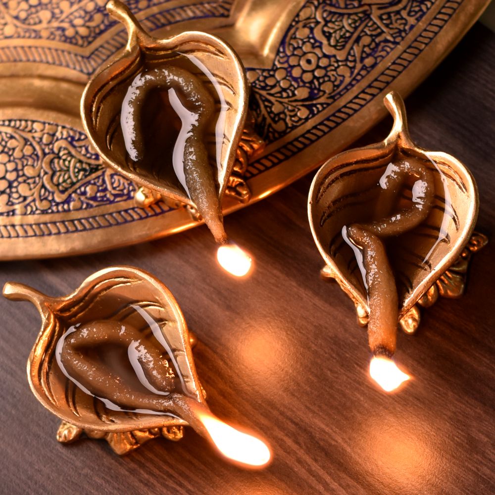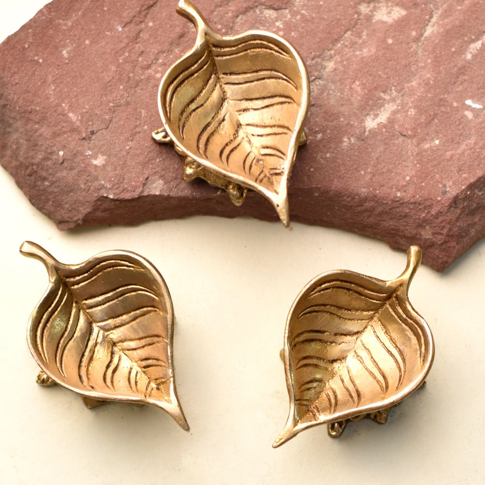Celebrate the spirit of Diwali with this Handmade Brass Leaf Shaped Diya, a perfect blend of tradition and artistry. Crafted in solid brass with a radiant golden polish, its leaf-inspired design symbolizes purity, prosperity, and growth. Compact yet striking, this diya enhances the sanctity of your puja rituals and adds elegance to festive displays.