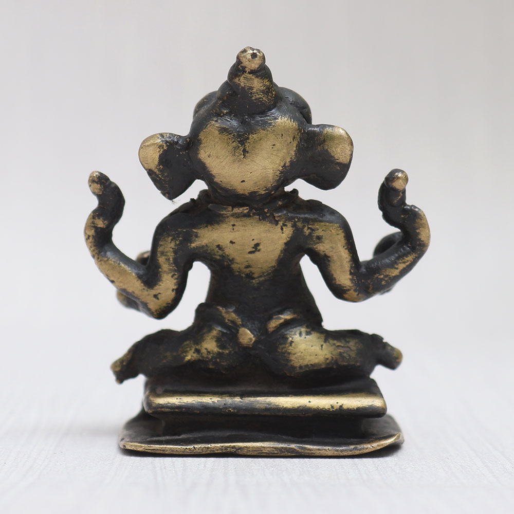 Enhance the ambience of your space with the captivating allure of this exquisite vintage brass statue of Lord Ganesha in a seated position. Meticulously handcrafted from premium quality brass, this Ganesh Murti showcases the impeccable craftsmanship of skilled Indian artisans. Its intricate detailing and rich patina reflect the timeless beauty of traditional artistry. This versatile piece is perfect for adorning your home, office, restaurant, hotel, or cafe temple, adding a touch of divine grace to any environment. It also serves as a remarkable collectible, an eye-catching exhibit, or a splendid decorative accent. The Ganpati Murti's spiritual significance and aesthetic appeal make it an ideal gift for your loved ones on special, festive, or auspicious occasions, symbolizing blessings, wisdom, and prosperity. Lord Ganesha, the remover of obstacles and the embodiment of wisdom, is revered in Hindu mythology. He is known to bring good fortune and success to those who seek his blessings. This Ganesh idol for car serves as a constant reminder of his divine presence, ensuring a safe and auspicious journey.