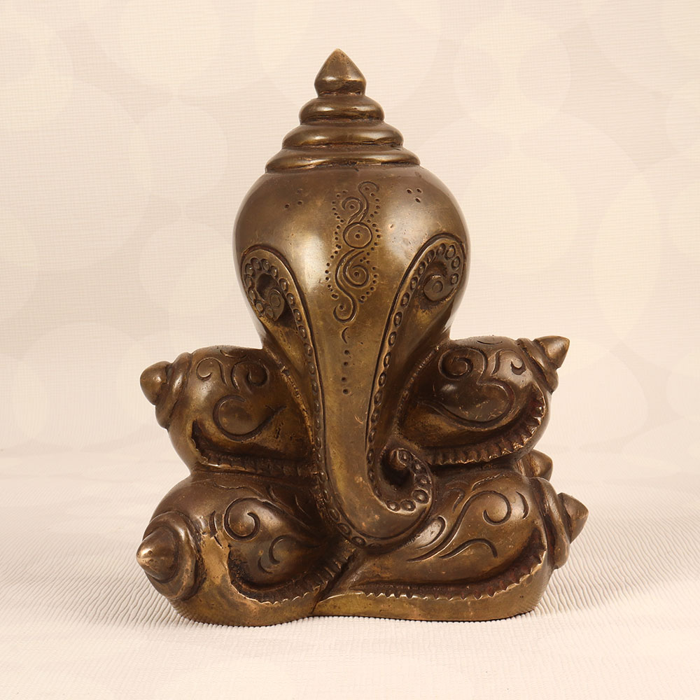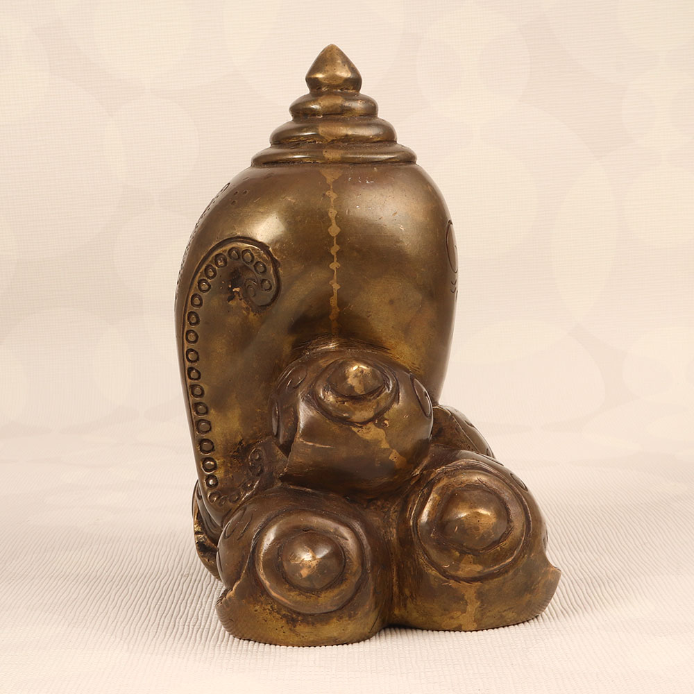 Adorn your prayer room with the timeless charm of our Vintage Brass Lord Ganesha Statue that is a true masterpiece crafted by talented Indian artisans in the Himalayan Art tradition. Made from high-quality brass, this statue boasts an antique brown finish, adding a touch of rustic elegance to any environment. Lord Ganesha, revered as the remover of obstacles and the god of wisdom, prosperity, and good fortune, graces this exquisite piece with his divine presence. Handmade with meticulous attention to detail, this vintage statue is a testament to the rich craftsmanship and cultural heritage of India. Whether adorning your home, office, restaurant, hotel, or cafe prayer room, it radiates a sense of spirituality and cultural significance. Embrace the spiritual essence by incorporating it into your vintage collection or present it as a thoughtful gift to your loved ones on special, festive, or auspicious occasions.