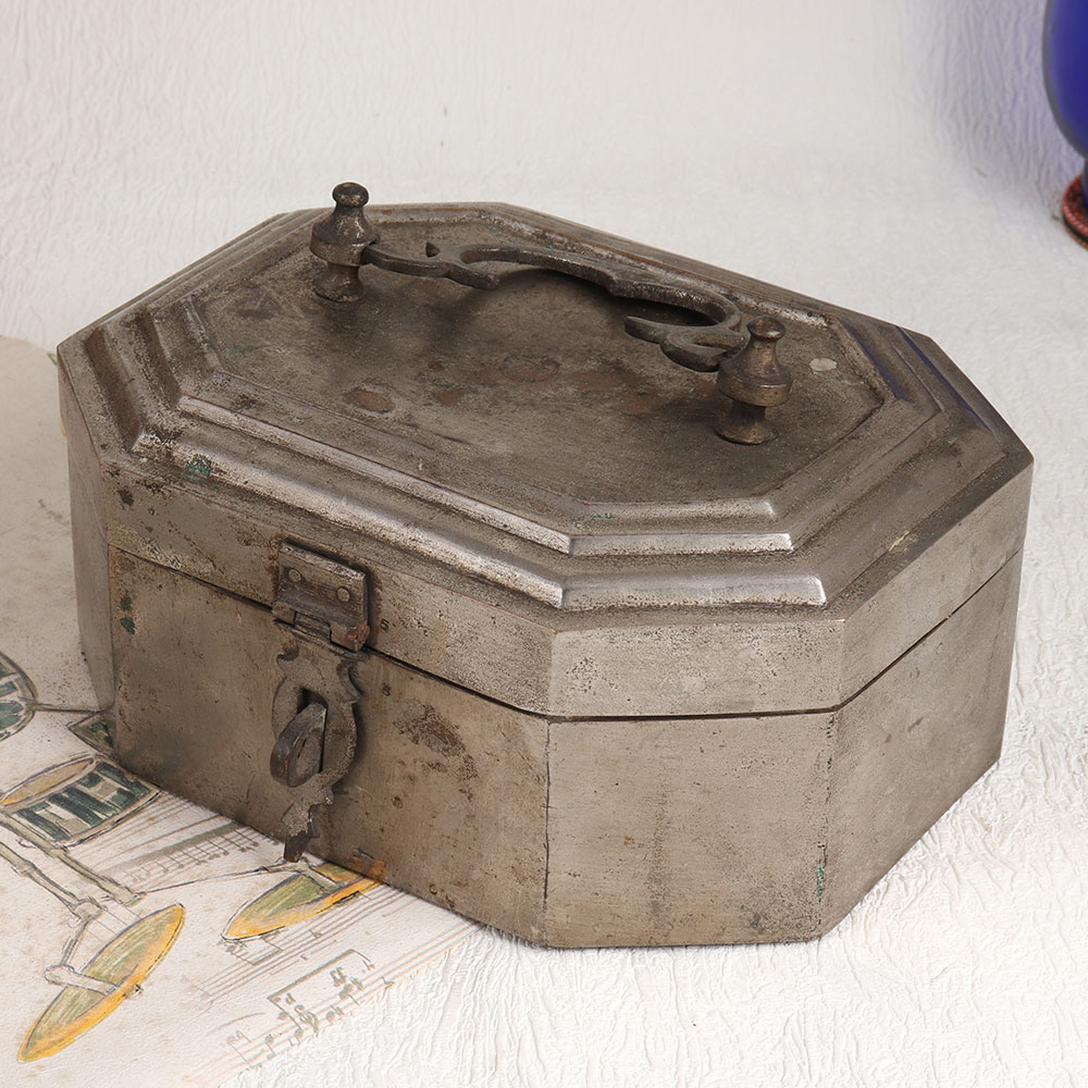 The Vintage Brass Paan Daan Box with a touch of elegance in its vintage gray finish, complete with a nickel-plated sheen. This exquisite piece is meticulously handmade by highly talented artisans from India, using only the finest brass materials. This ornate paan daan box showcases the rich cultural heritage of India and can be a captivating addition to your home, office, restaurant, hotel, cafe, or shop. However, due to its vintage nature, we recommend using it primarily for decorative purposes, allowing you to immerse yourself in the charm of yesteryears. The box boasts five compartments that were originally designed to store paan ingredients, adding an element of nostalgia to your space. Whether you're a collector of vintage treasures or planning to exhibit a slice of Indian history, this paan daan box will surely make a striking statement. This versatile piece can also serve as a thoughtful and unique gift for your loved ones on special, festive, or auspicious occasions, encapsulating the artistry and heritage of India in every detail.