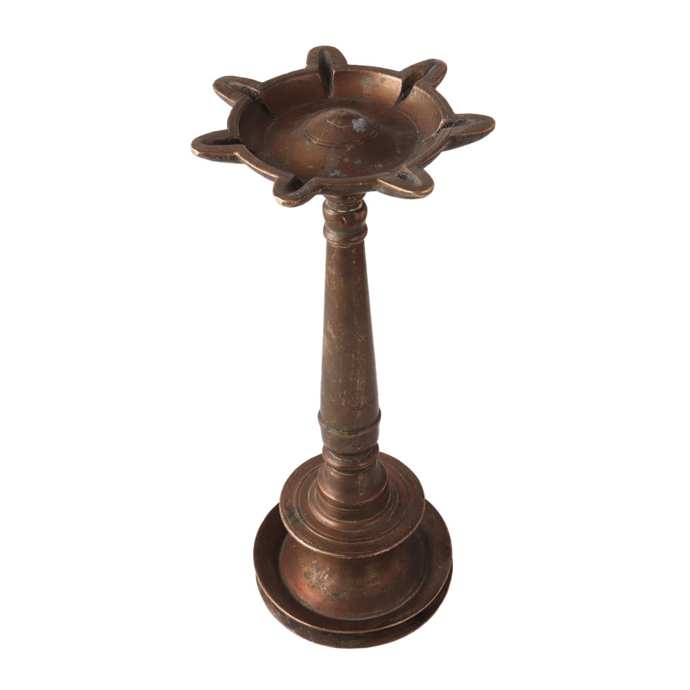 The elegant Kerala kuthu vilakku pooja Diya Stand Lamp is made of pure brass, making it both beautiful and durable. This brass stand has a very high-quality finish. You can use it every day to create a serene mood in your house and puja area. The lamp's wicks are made of cotton. Since ancient times, this diya has served as a source of illumination and decoration.