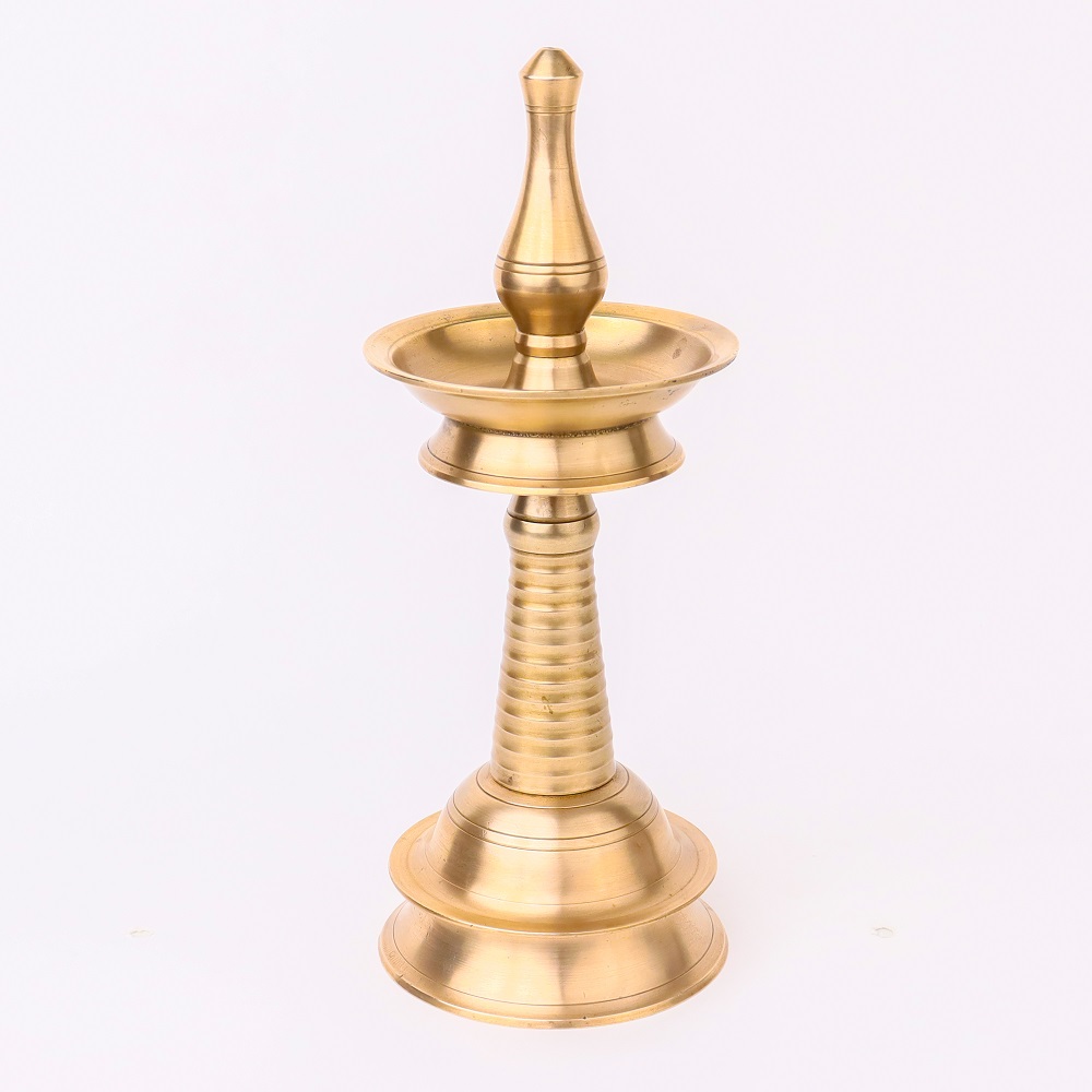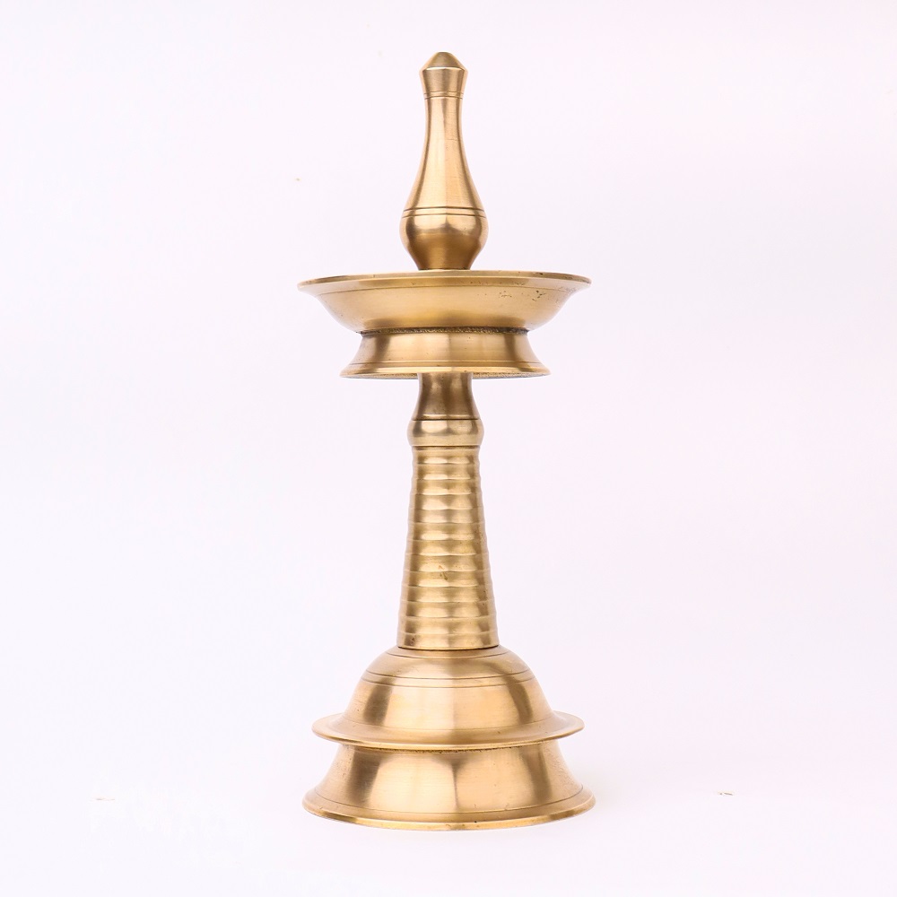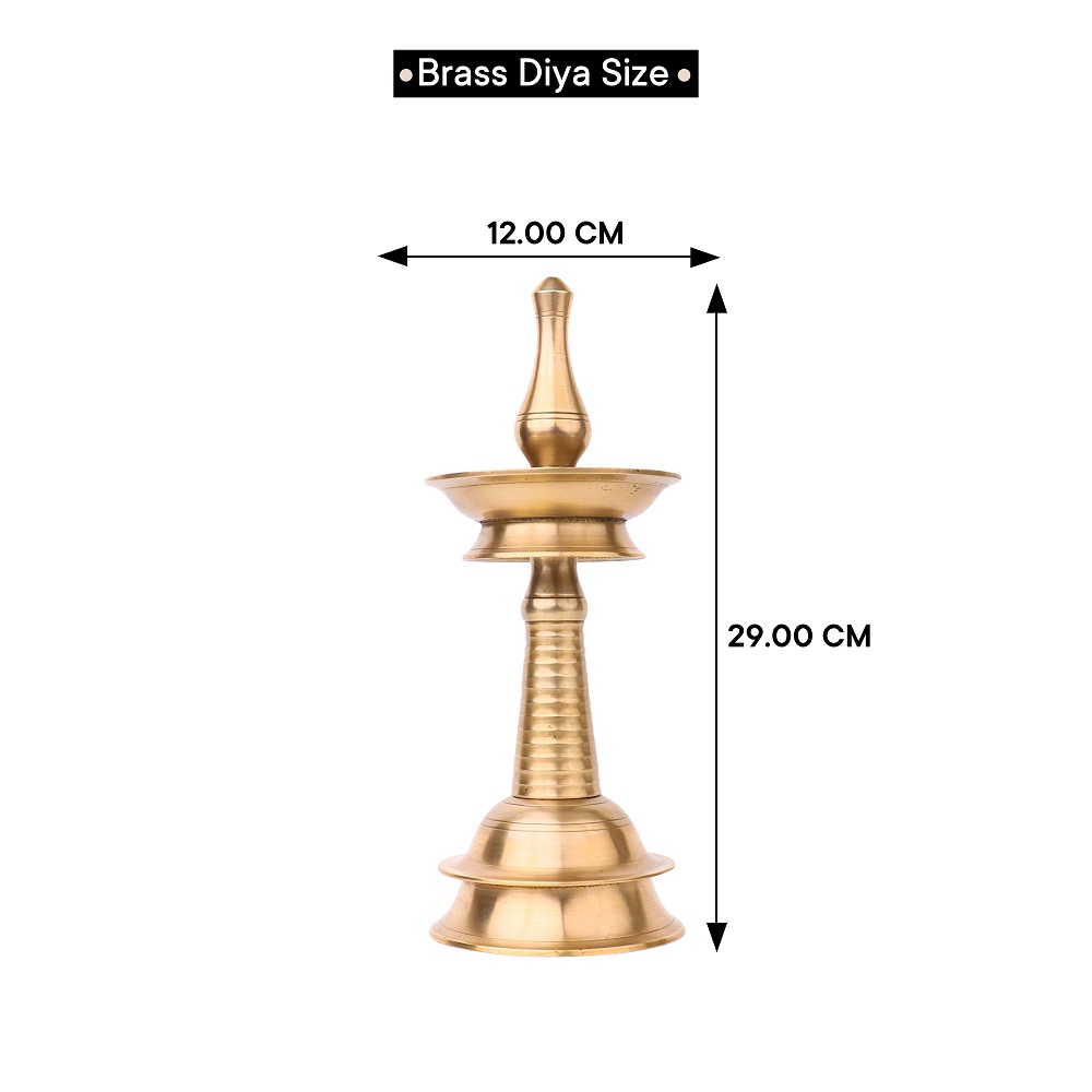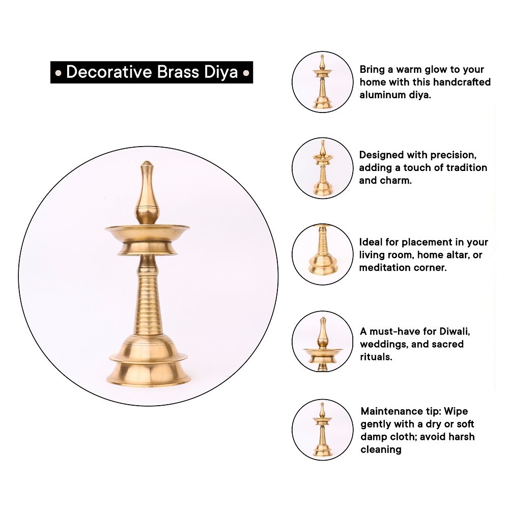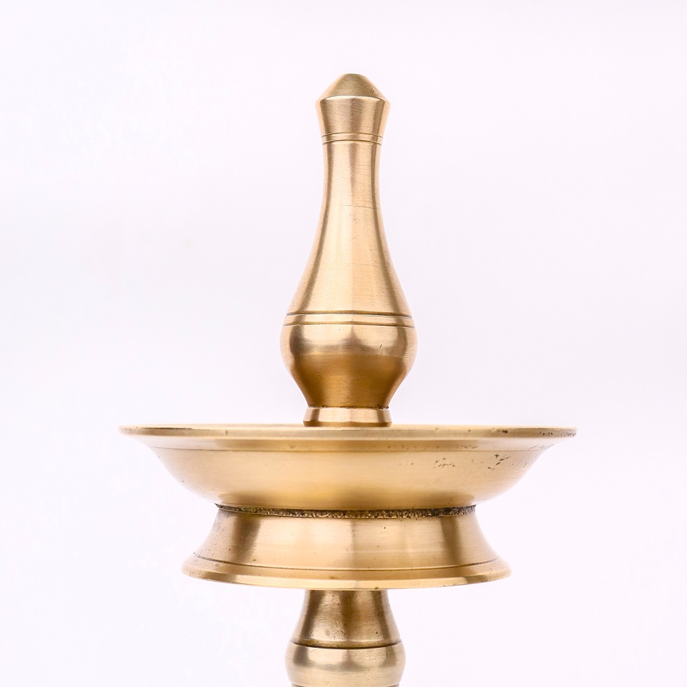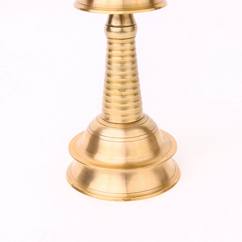 Discover the beauty of South Indian craftsmanship with this exquisite handmade brass oil lamp. Skilled artisans have poured their heart and soul into creating this piece, resulting in a shiny finish that reflects their dedication and expertise. This lamp is specially designed for use in temples during pooja and rituals, as well as for special occasions and celebrations. Its vintage charm and unique design make it a perfect decorative piece that adds a touch of elegance to any space. Whether used as a focal point in your pooja room, a conversation starter in your home, or a thoughtful gift for loved ones, this brass oil lamp is a treasure that embodies the richness of Indian cultural traditions and the art of handmade craftsmanship.