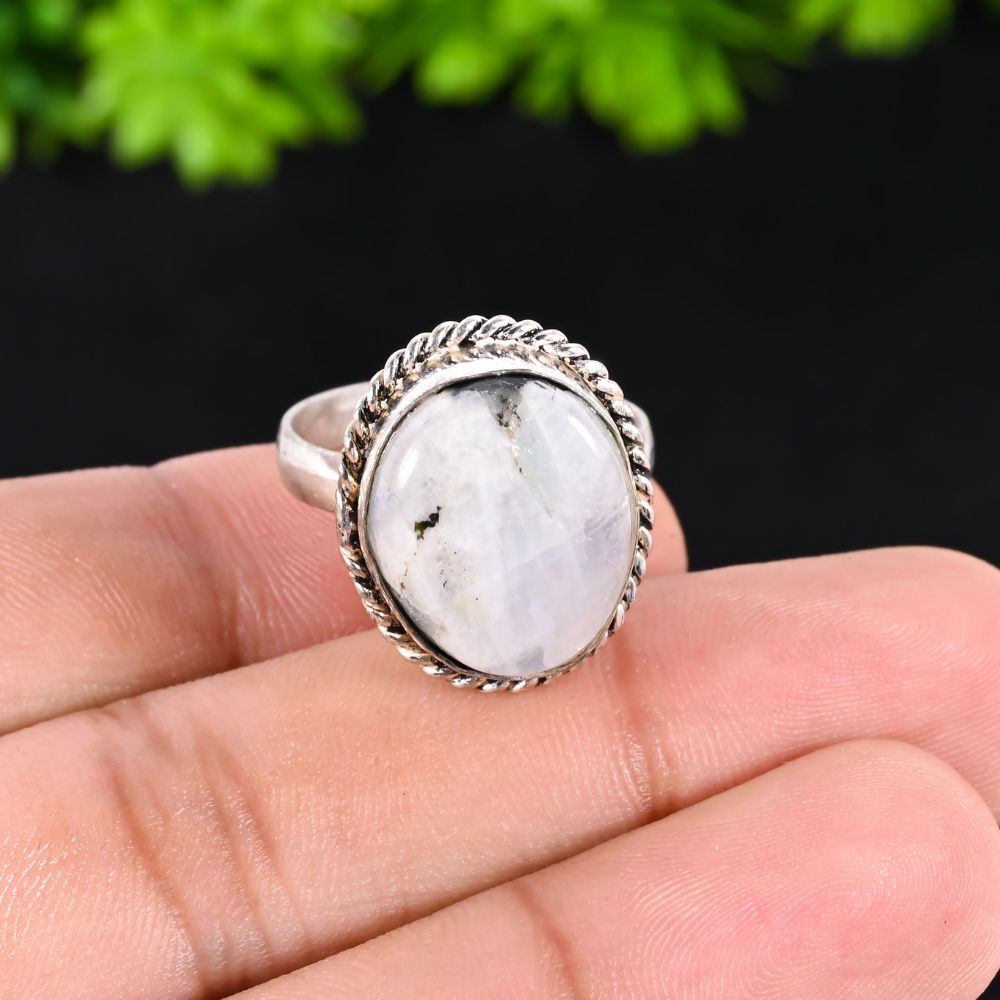 Bring a touch of magic and elegance to your collection with this handmade Rainbow Moonstone ring, crafted from oxidized brass for a vintage and sophisticated finish. Featuring a natural Rainbow Moonstone gemstone, known for its iridescent shimmer and spiritual properties, this ring is perfect for women who love handmade, unique, and meaningful jewelry. Available in size 7.5 US, it makes a stylish statement on any finger.