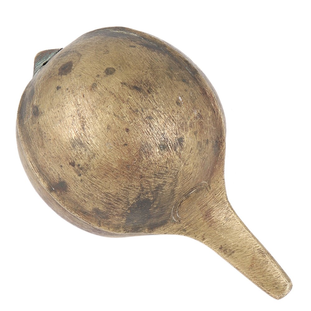Hand crafted old club shaped brass rattler made by the local artisans using traditional methods and tools made for temple and religious places. This is a rare hindu collector piece.