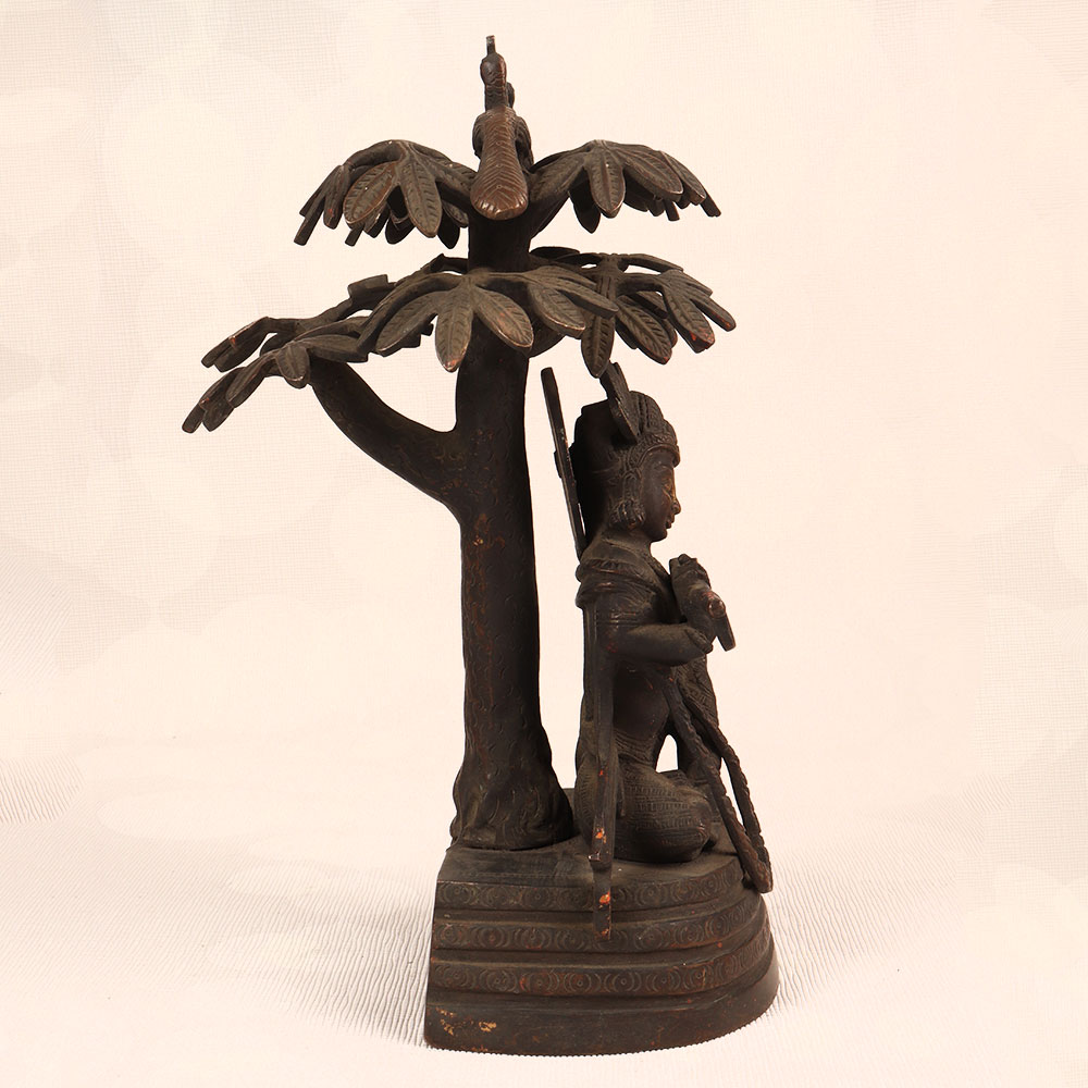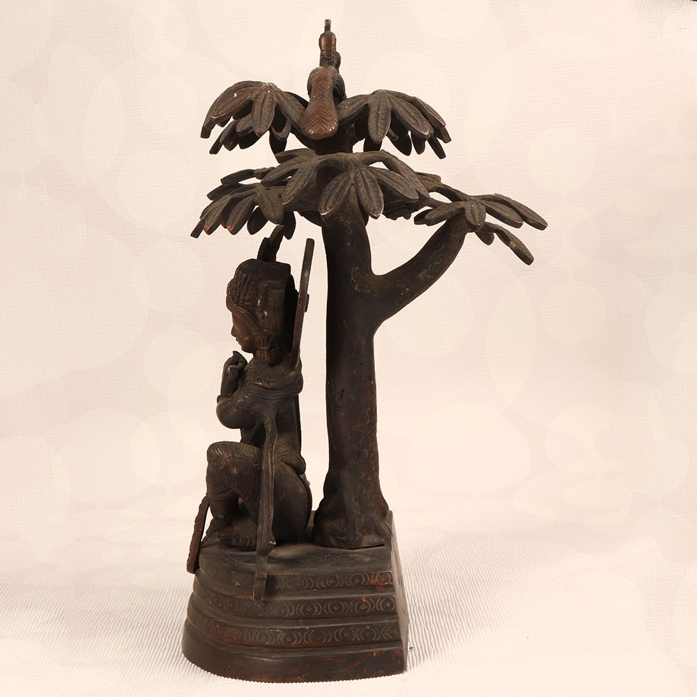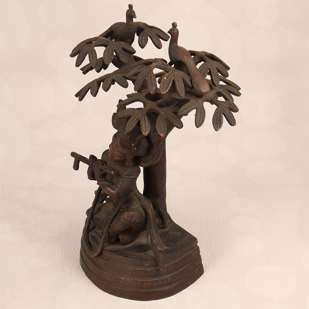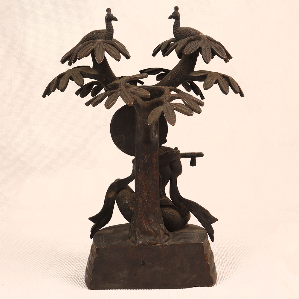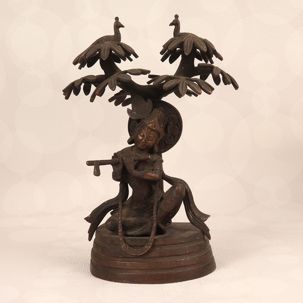 Enhance your space with the timeless charm of our Vintage Brass Statue of Lord Krishna that is a masterpiece crafted by professional Indian artisans. Intricately handmade from high-quality brass, this exquisite statue features Lord Krishna in a contemplative pose, seated under a tree, playing the flute. The dark finish adds an antique allure, reminiscent of classical artistry. This divine creation transcends the boundaries of culture, making it a versatile addition to any setting. Perfect for home, office, restaurant, hotel, or café prayer rooms, it exudes an aura of tranquillity. The statue of Lord Krishna not only honours the divine but also becomes a captivating piece for vintage collectors. For a harmonious ensemble, consider complementing it with our Lord Ganesha statues. Together, they symbolize prosperity, wisdom, and divine protection. A meaningful and elegant gift, this statue is ideal for special, festive, or auspicious occasions, providing a touch of spirituality and aesthetic appeal to your loved one’s lives.