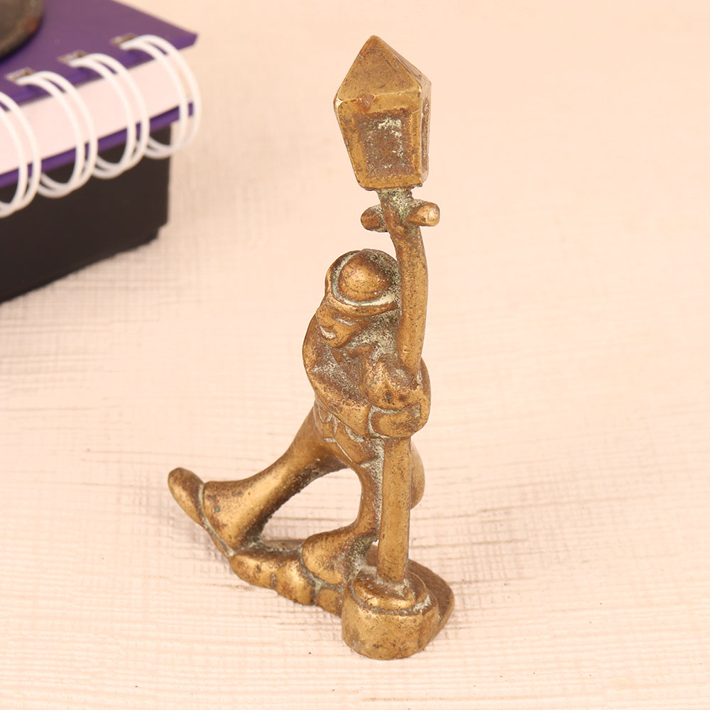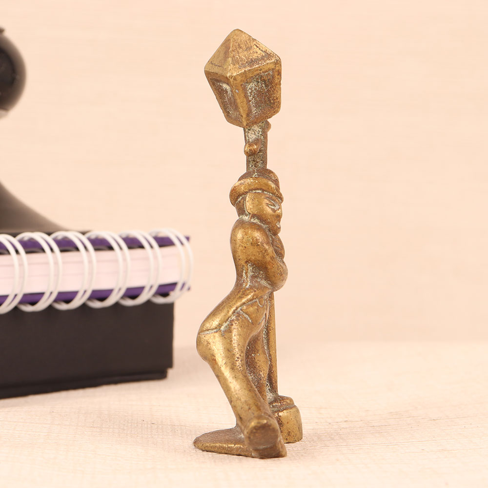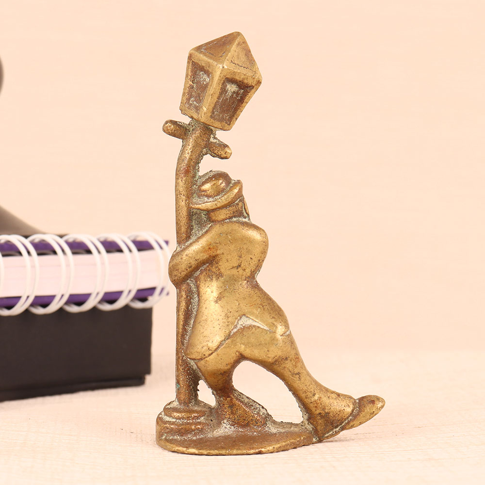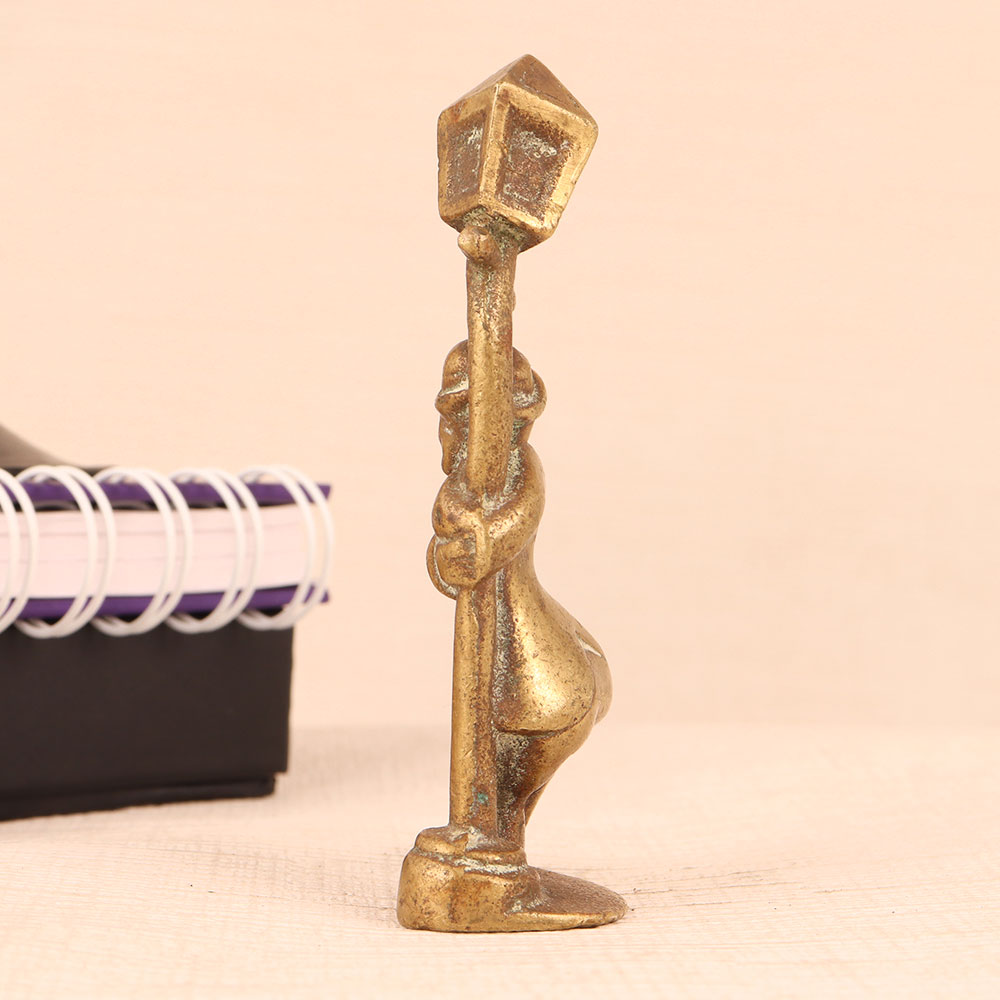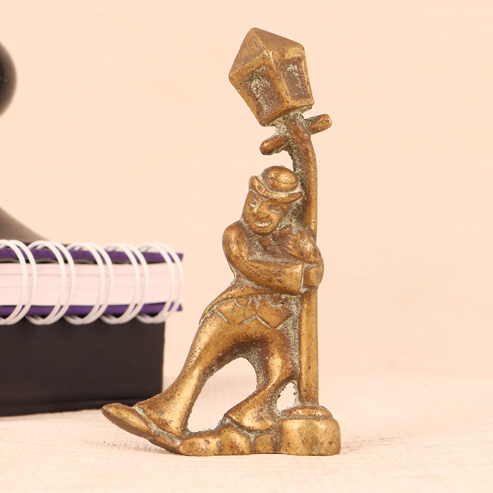 An Exquisite Brass Statue of a standing man, gracefully holding a vintage-style light pole. Crafted to perfection by professional artisans in the English Art tradition, this masterpiece exudes timeless elegance. The statue boasts an antique brown finish, lending it an air of nostalgia and sophistication. Made from high-quality brass, it showcases the artistry and craftsmanship that only skilled hands can deliver. This versatile piece finds its place in various settings, be it your home, office, restaurant, hotel, cafe, or shop. Its ability to seamlessly blend with different aesthetics makes it a versatile choice for decorators and collectors alike. For collectors of vintage treasures, this statue is a must-addition to your curated collection. It's a statement piece that will spark conversations and admiration. Looking for a memorable gift? This Brass Statue is an ideal choice for your loved ones on special, festive, or auspicious occasions. It's a symbol of sophistication, artistry, and the timeless charm of English Art.