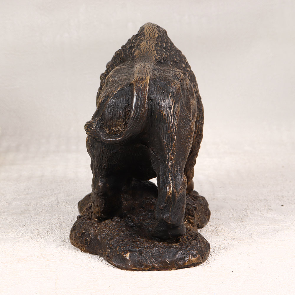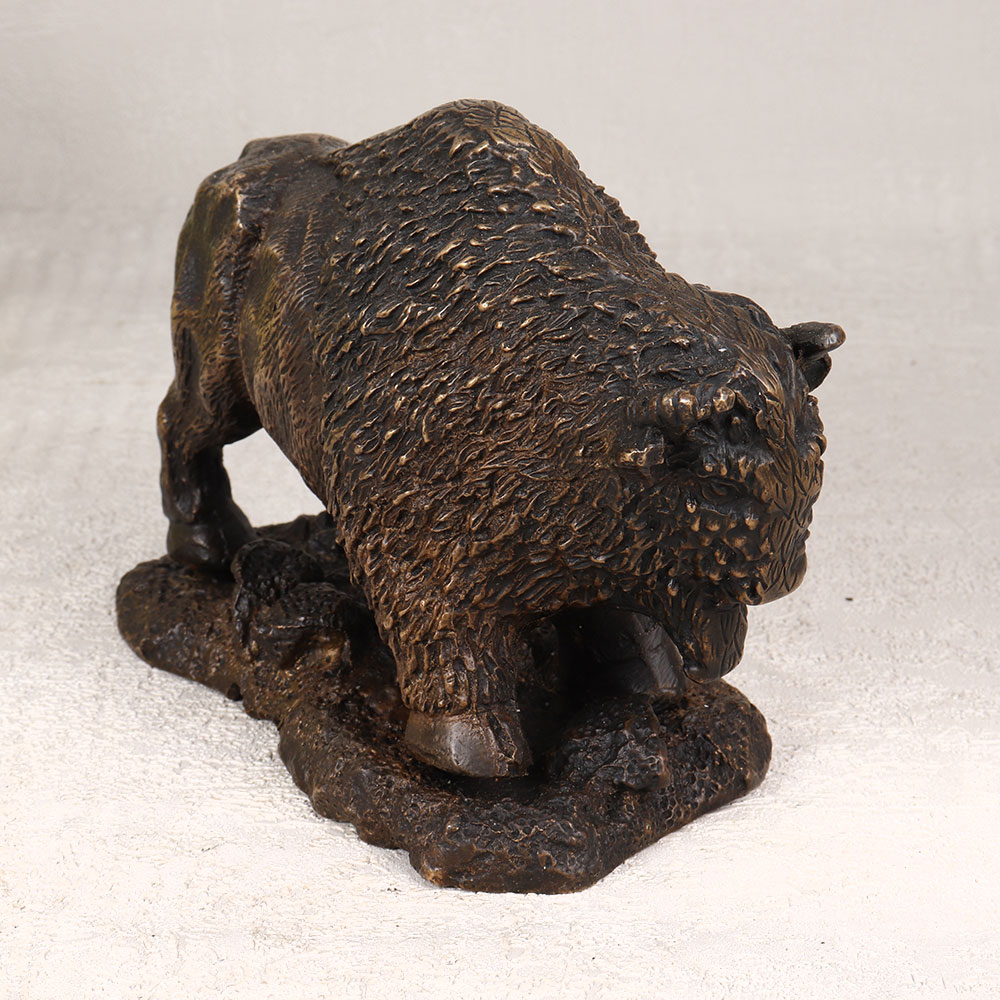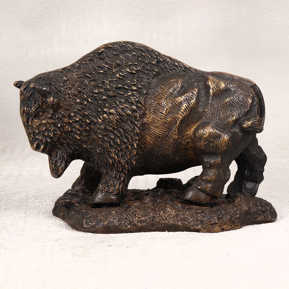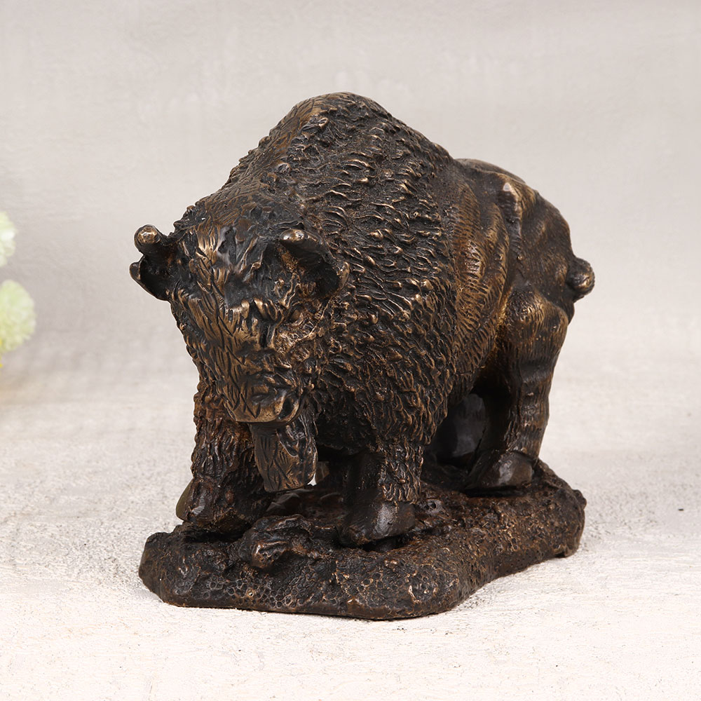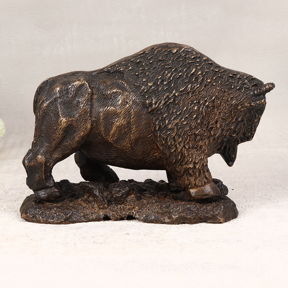 A Brass Statue of the North American Bison Buffalo which is a symbol of strength and resilience. Standing proudly on a sturdy platform, this exquisite piece showcases intricate details, expertly crafted by highly skilled artisans in the English Art tradition. The antique brown finish adds a touch of vintage charm, enhancing the allure of this handcrafted sculpture. Meticulously cast from high-quality brass, the Bison Buffalo statue is a testament to craftsmanship and precision. Suitable for a variety of spaces, including homes, offices, restaurants, hotels, or cafes, it serves as a captivating decorative accent. Elevate your surroundings with a touch of rustic elegance, making a statement that resonates with the spirit of the wild. This timeless piece isn't just a decorative item, it's an addition to a vintage collection, a unique expression of artistry. Perfect for gifting on special, festive, or auspicious occasions, this brass masterpiece is a heartfelt way to convey admiration and appreciation to your loved ones.