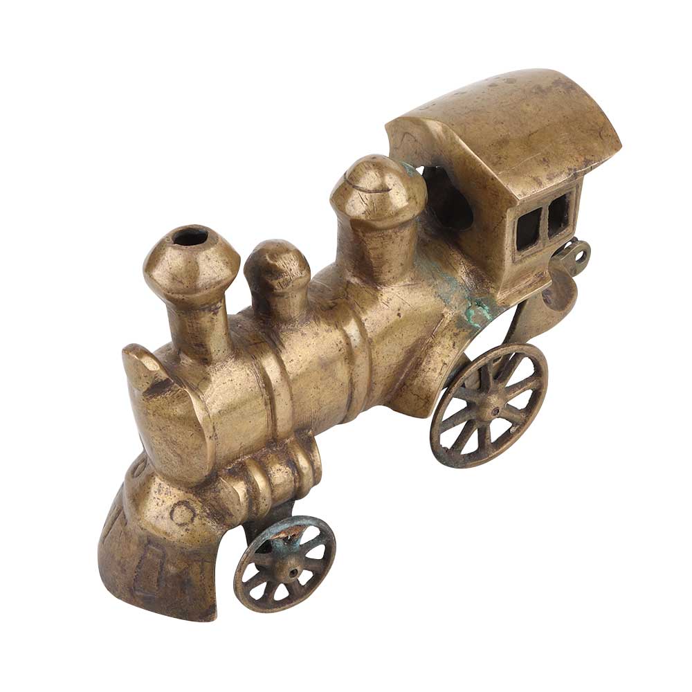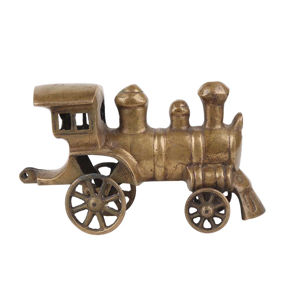 Handmade Brass Steam Engine Locomotive with four wheels with a cabin for the person who drives the engine . You can see the details and engravings on the engine. Great showpiece , Display for your centre table or wall unit. Gift it to your friends and realties on special relatives and friends.