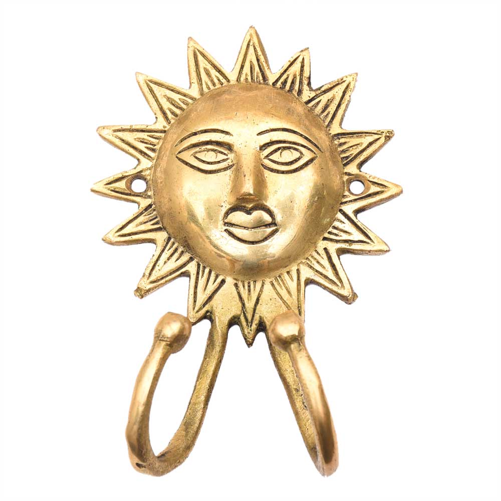 The Brass Surya Dev Face Wall Hook is a handcrafted wall accent that brings spiritual energy and traditional Indian artistry into your home. Featuring the radiant face of Surya Dev—the Sun God—cast in pure brass, this hook combines religious symbolism with practical function. Each piece is carefully sculpted with fine detailing and polished to a golden gleam, making it both a functional wall hook and a statement of divine design.