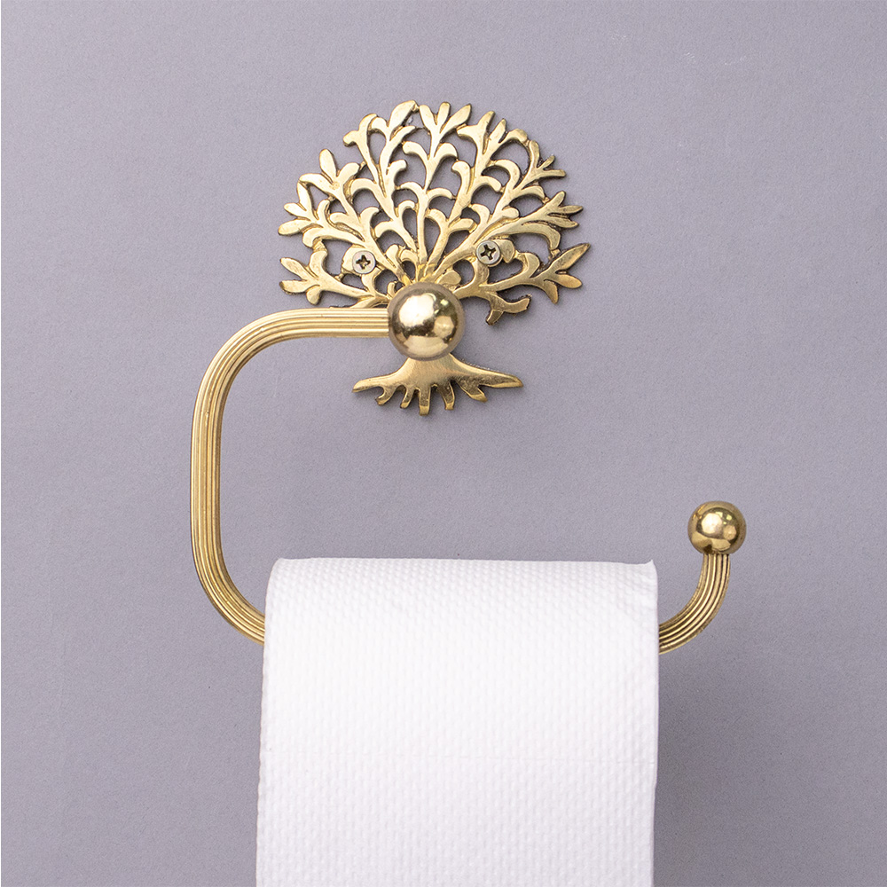 Buy a Brass Toilet Paper Hanger in a charming Tree Design online which is a perfect blend of functionality and aesthetics for your bathroom. This meticulously crafted piece, with its antique golden finish, adds an elegant touch to any interior space, be it at home, the office, a hotel, or a restaurant bathroom. Handmade by highly skilled and experienced Indian artisans, this hanger showcases their craftsmanship and dedication to detail. Crafted from high-quality brass, it not only exudes durability but also a timeless allure that will elevate the ambiance of your surroundings. Its unique tree design complements any decor, providing an appealing storage solution for your toilet paper rolls. Looking for a thoughtful gift for your loved ones on special or festive occasions? Look no further. Our Brass Hanger makes for a meaningful and elegant present that adds a touch of luxury to their spaces. Choose the Brass Hanger for bathroom in Tree Design - where form meets function, quality meets style, and craftsmanship meets your needs.