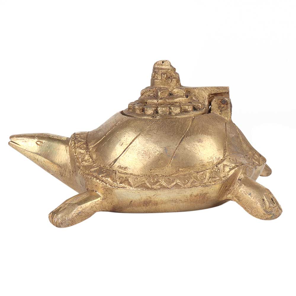 Handmade Brass Turtle Figurine with a Small Storage Box to Store Small Pieces of Jewelry Like Earrings, Rings, Nose Pins. It Can Also Be Used in the Puja and Also as a Paper Weight. Place the Turtle in the Interiors of Your House to Attract Good Luck and Positive Energy. The Box Can Be Sealed Using a Small Screw to Keep Your Belongings Safe and Intact.