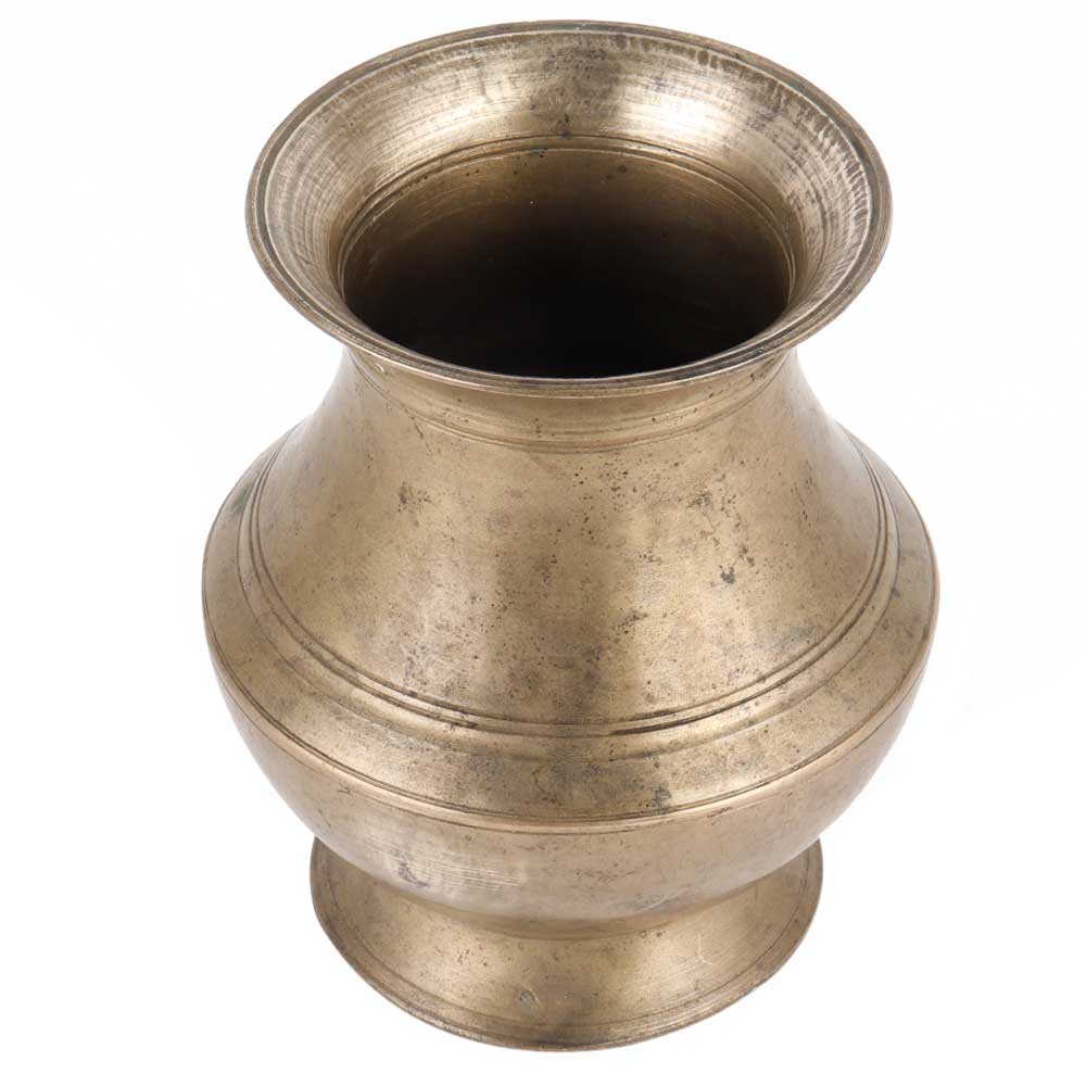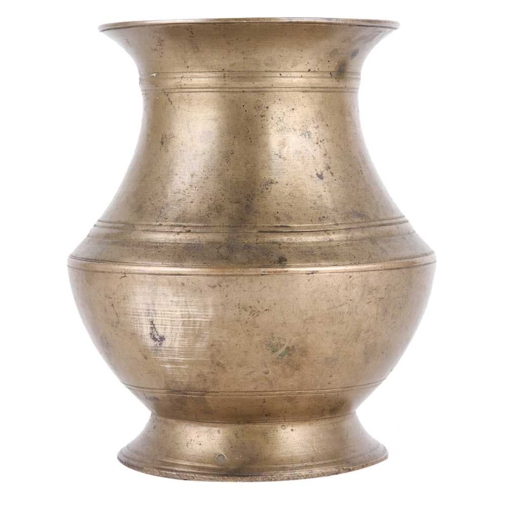Traditional Brass Lota Vase or Water Vase with a lovely handcrafted design. Lota Vases are water vessels used for cleaning and purification rituals. It has lovely detailing and would be a lovely addition to any home.