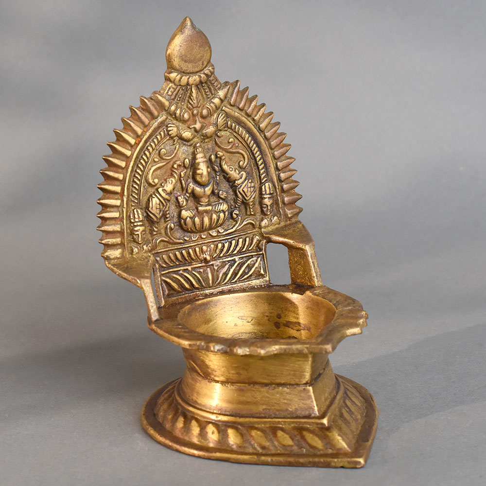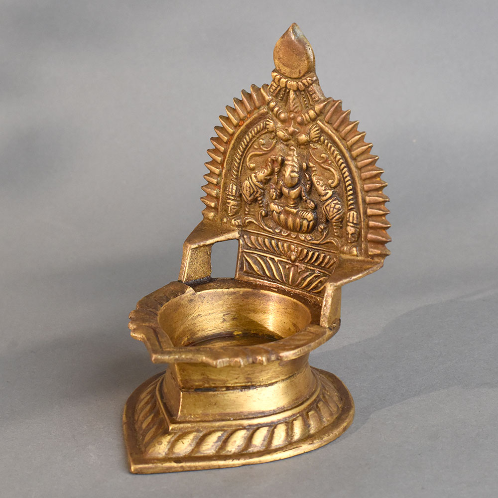 - Handmade brass pooja diya with Lord Ganesha design