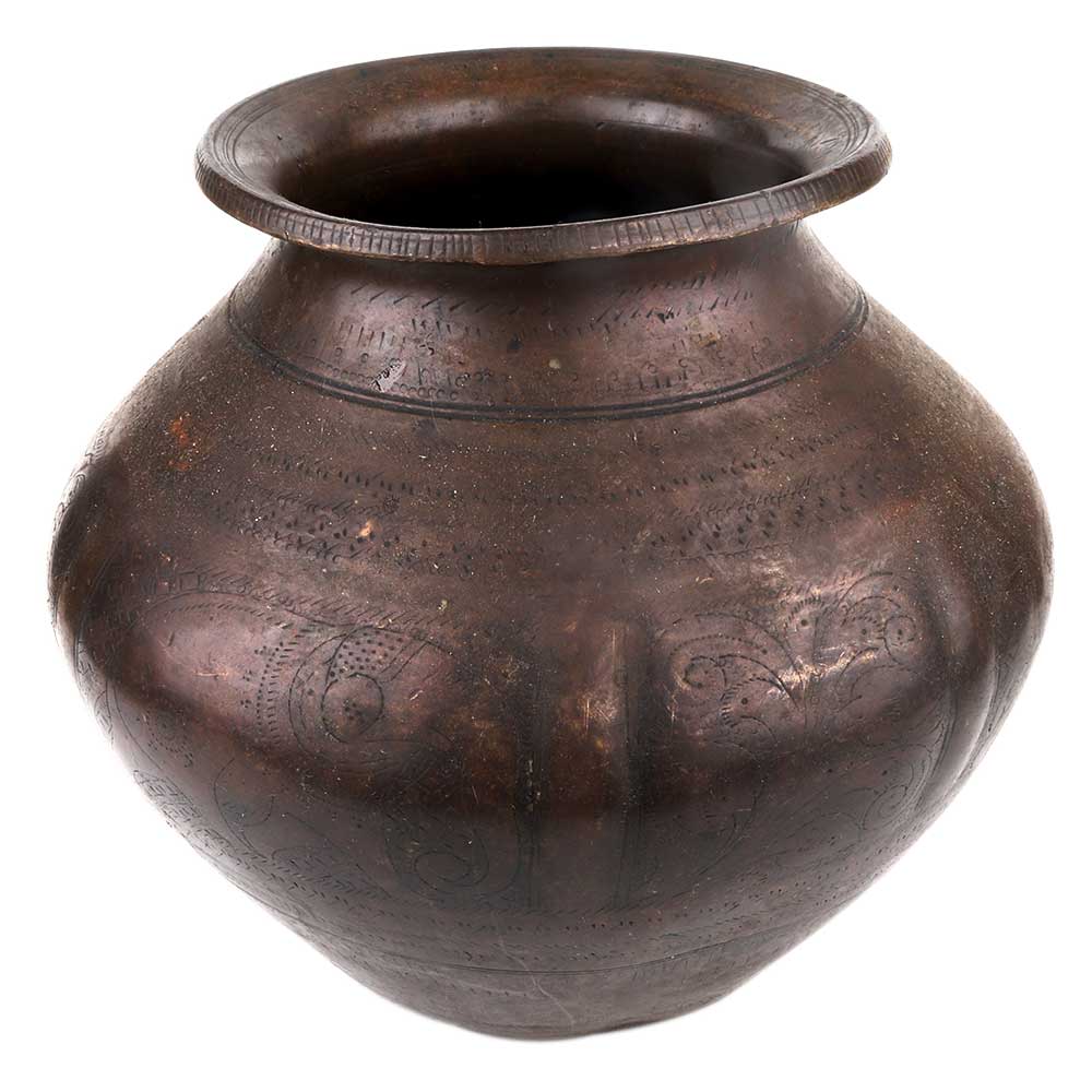 Handmade Brass Water Pot with Engraved Design
