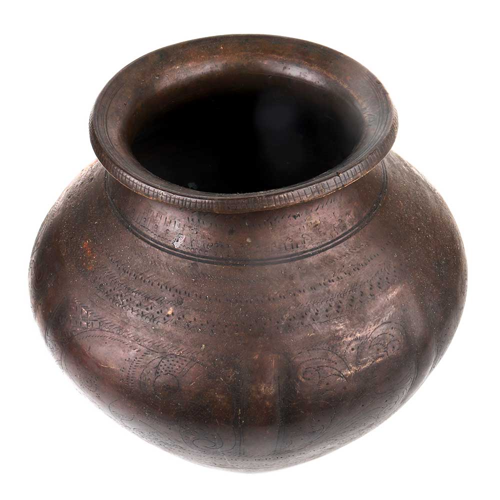 Handmade brass water pot with patina and delicate carvings to enhance the look of ordinary water pot. Use it yourself or use it for flower decoration ,as a planter, store holy water and kept in temples or other places of worship. Gift it to your near and dear ones on diwali, chrismas,new year, house warming etc.