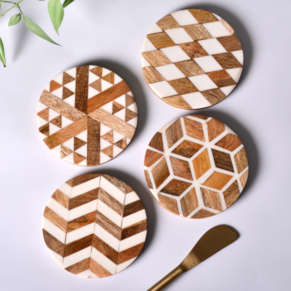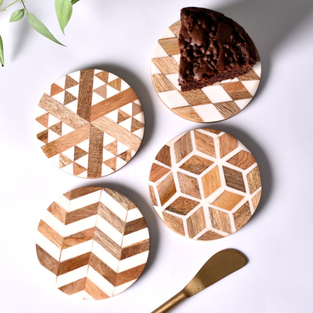 Handmade Brown and White Round Resin Set of 4 Decorative Coasters