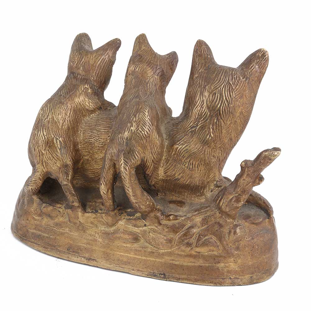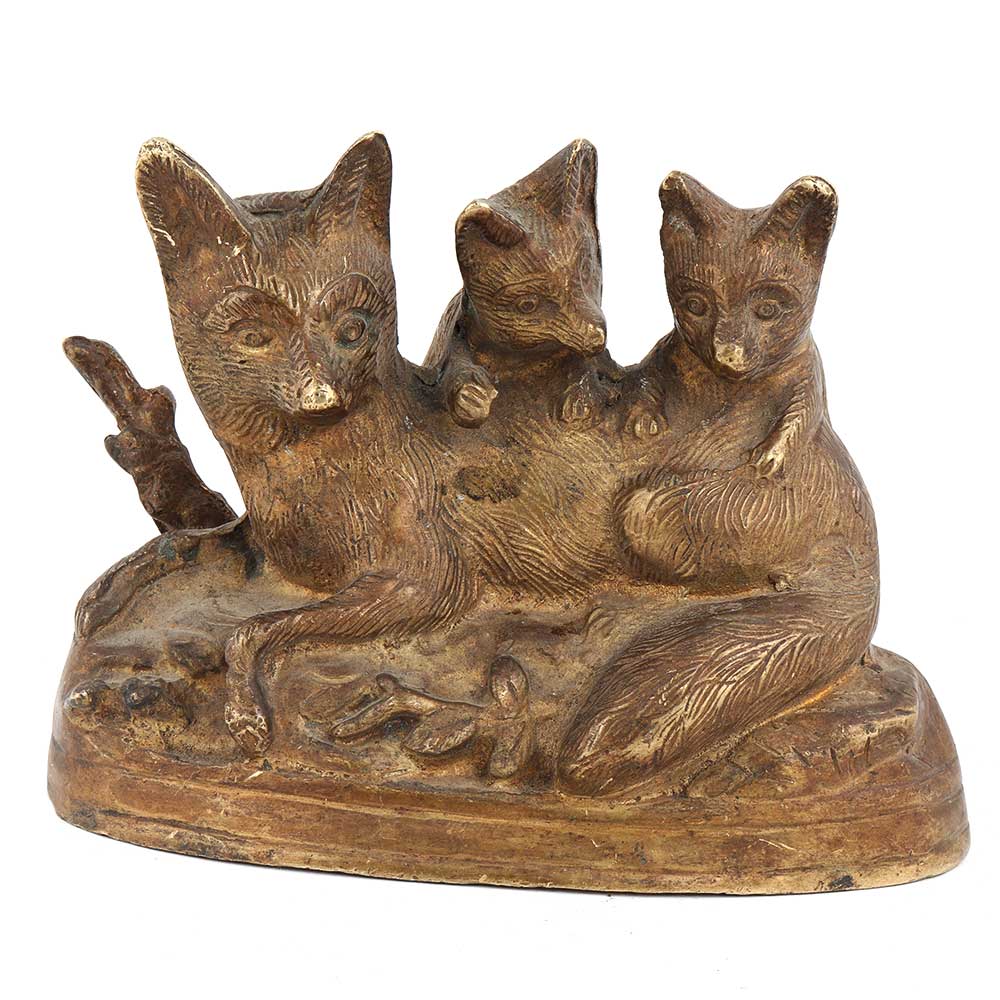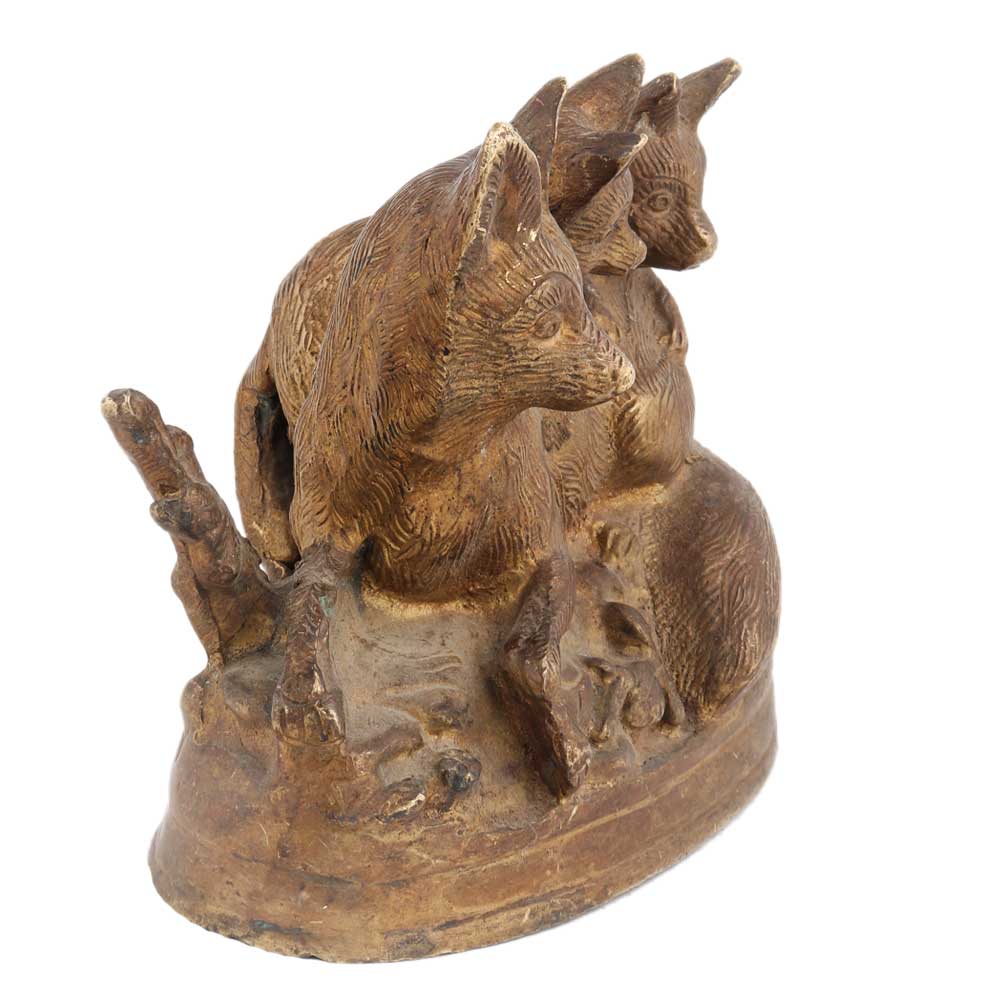 • Handmade Brown Brass Cat  With Her Kittens Statue Showpiece
