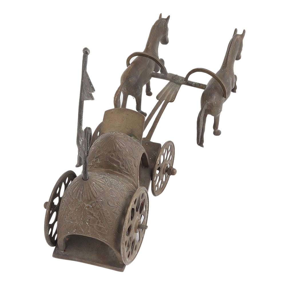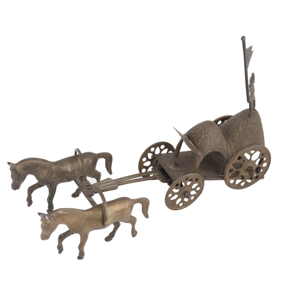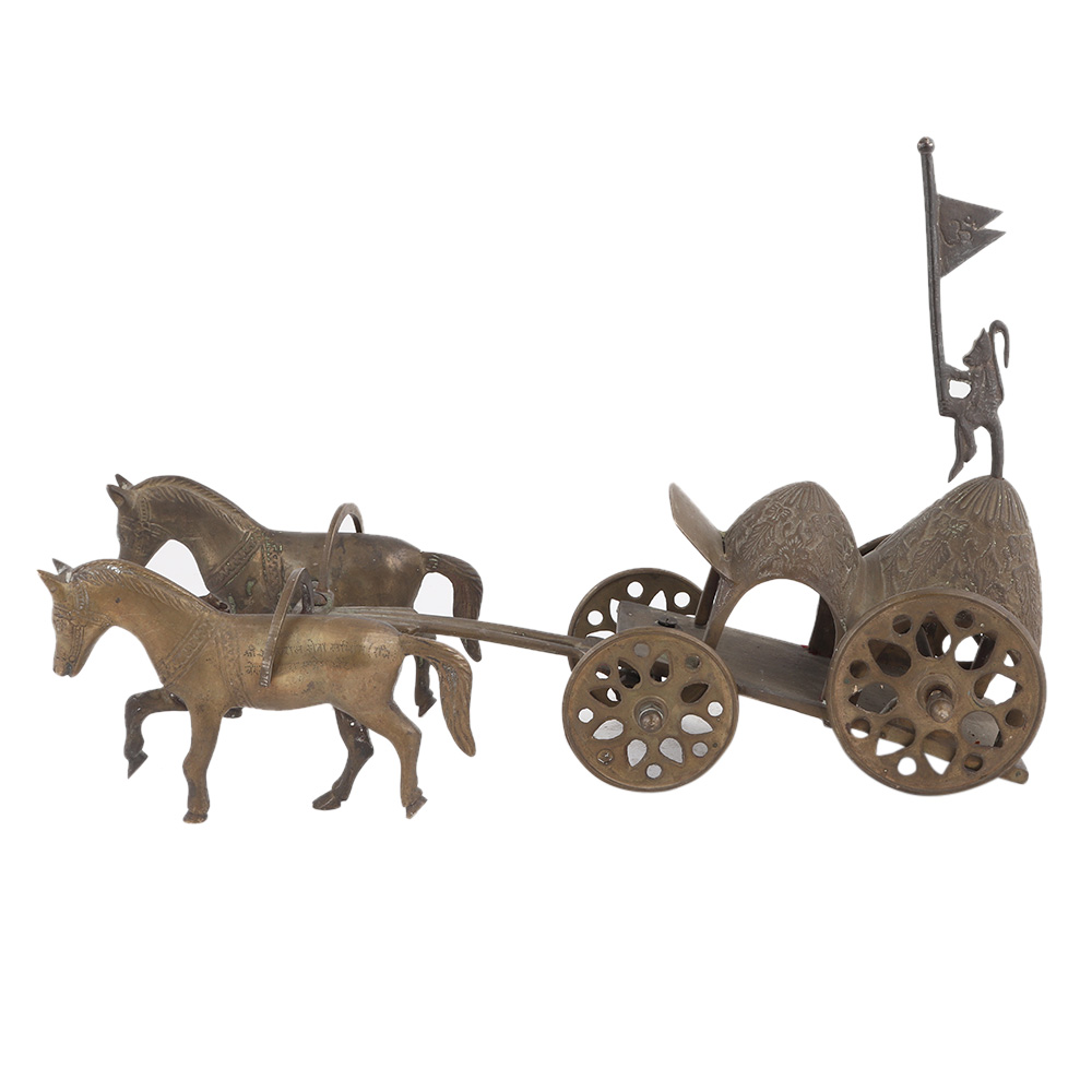 Handmade Brown Brass Chariot Or Cart With Two Horses