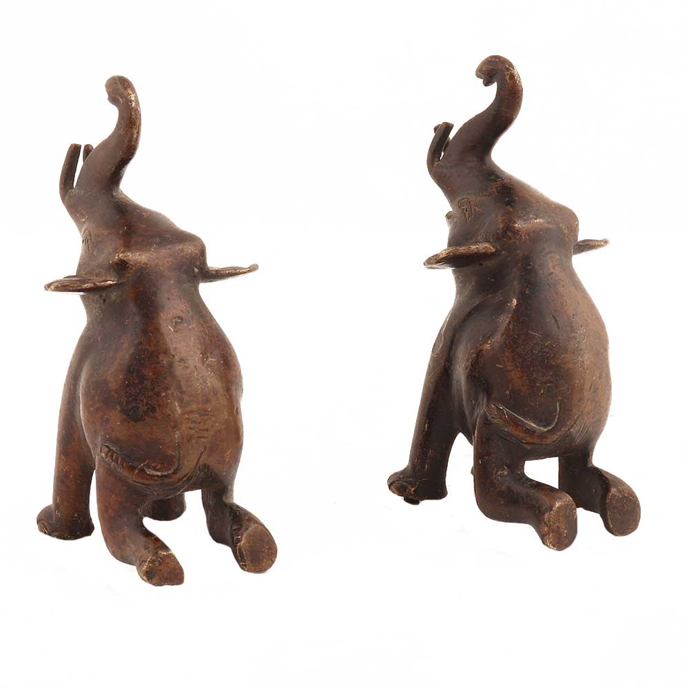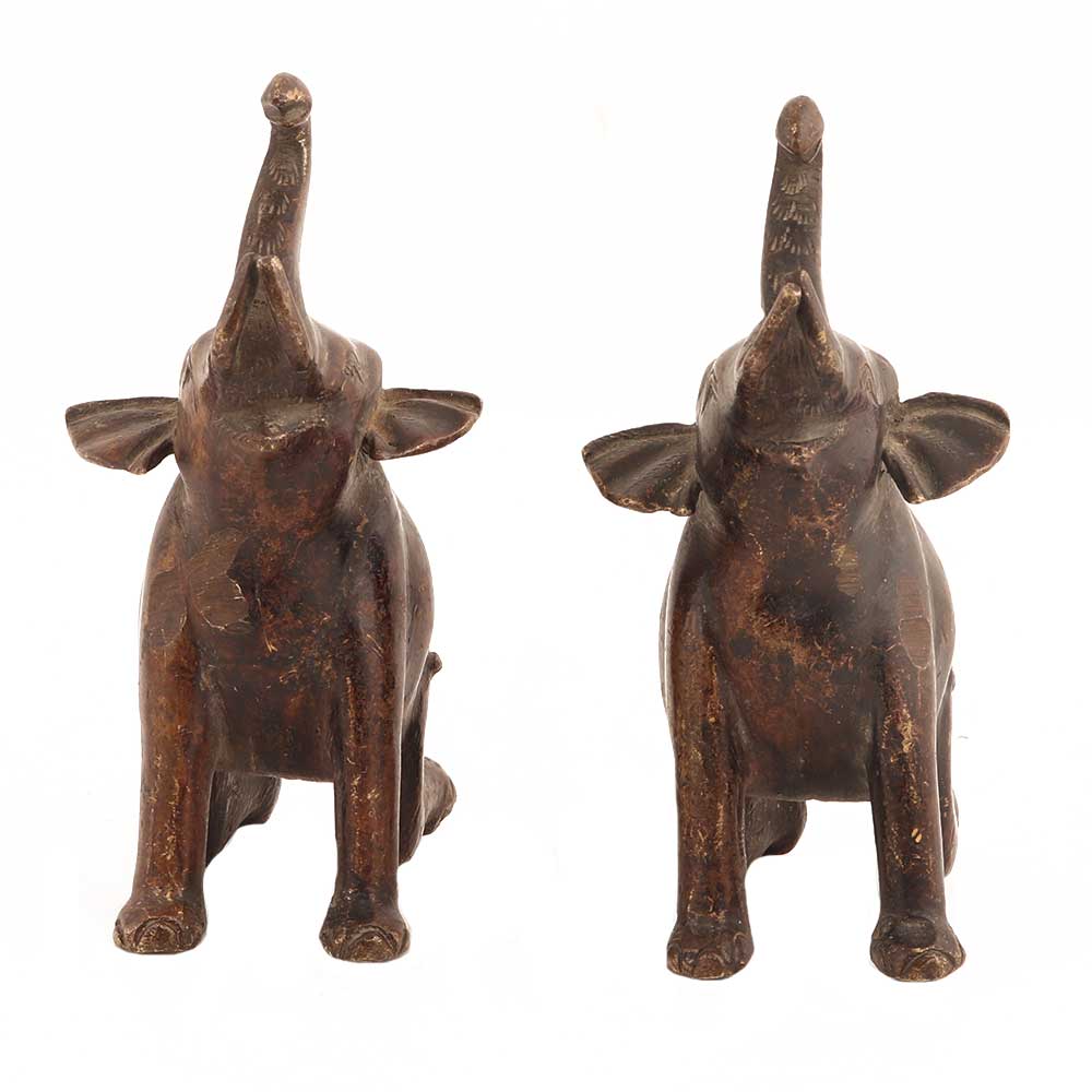 Handmade Brown Brass Elephant Statue Pair