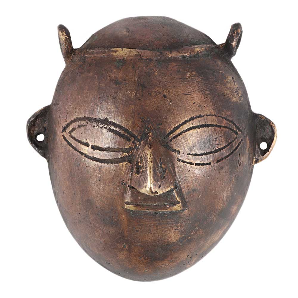 This handcrafted tribal face mask in solid brass is the perfect complement to any area in the house, regardless of where it is put. This mask gives it a calm energy and urban living feel. It has a lovely patina that makes it all the more appealing.