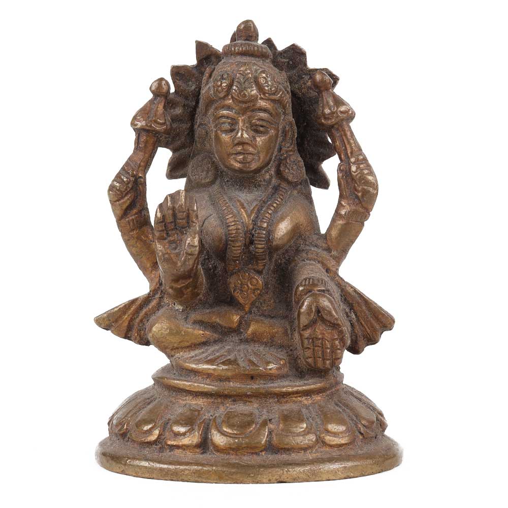 • Handmade Brown Brass Goddess Laxmi Statue on Lotus Base